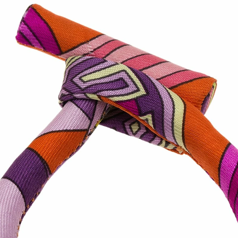 Funky and cool, this bracelet by Hermes will add the colors of style to your day. Made from silk, it features a quirky multicolored geometrical print that will cheer you up. Ideal to be worn with a classic summer day flare dress for a head-turning look.