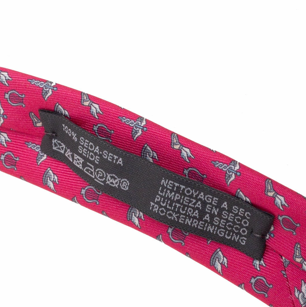 Why settle for a plain dull tie when you can add just the luxurious cut with this silk piece from Hermes! This pink tie is splayed with luxe prints which lend it a classic appeal. Make sure to pair the tie with your simple shirts for a stand-out finish.