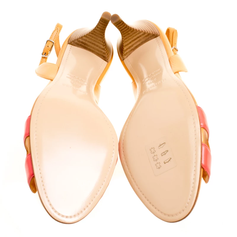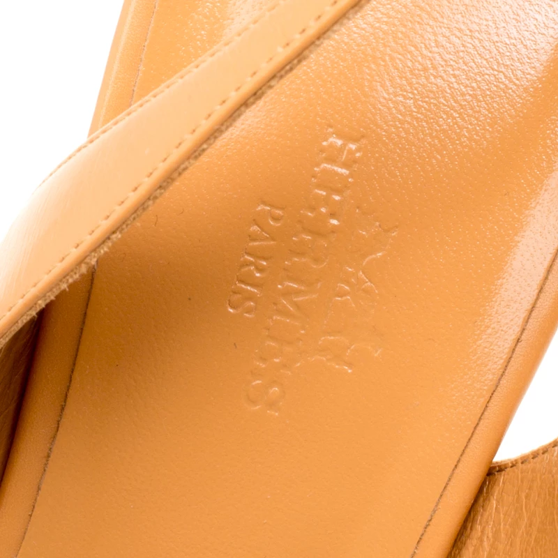 These perfect daytime wear Night sandals from Hermes add a hint of style to your casual look along with a pop of color to stand out. Constructed in beige leather, these sandals feature a pink leather cut out detailed H strap at the front along with silver-tone buckled slingback straps for the elegant and feminine look.