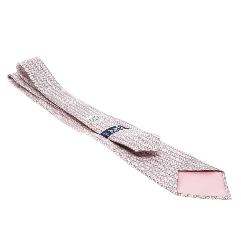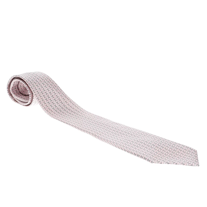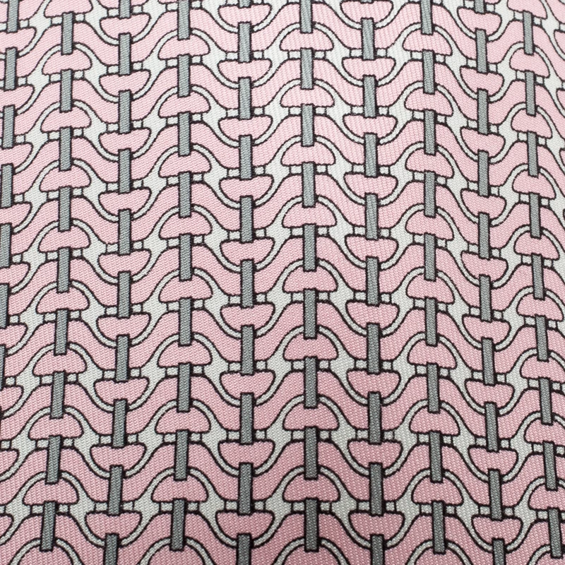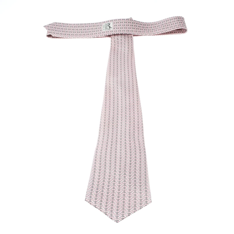 Nothing like statement accessories to help show your love for fashion. Cut from quality silk, this Hermes tie features prints in grey and pink all over. This stylish piece is worth the buy.