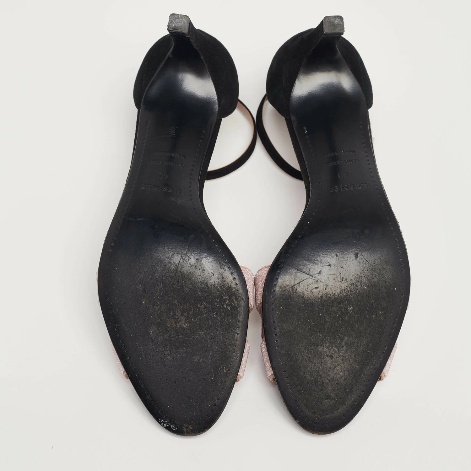 The House of Hermes brings you these sandals to elevate your style sense and attire! They are created using pink-black crystals and suede on the exterior. They flaunt open toes, a buckled ankle strap, and 7 cm heels. Look super trendy and chic as you wear these sandals.