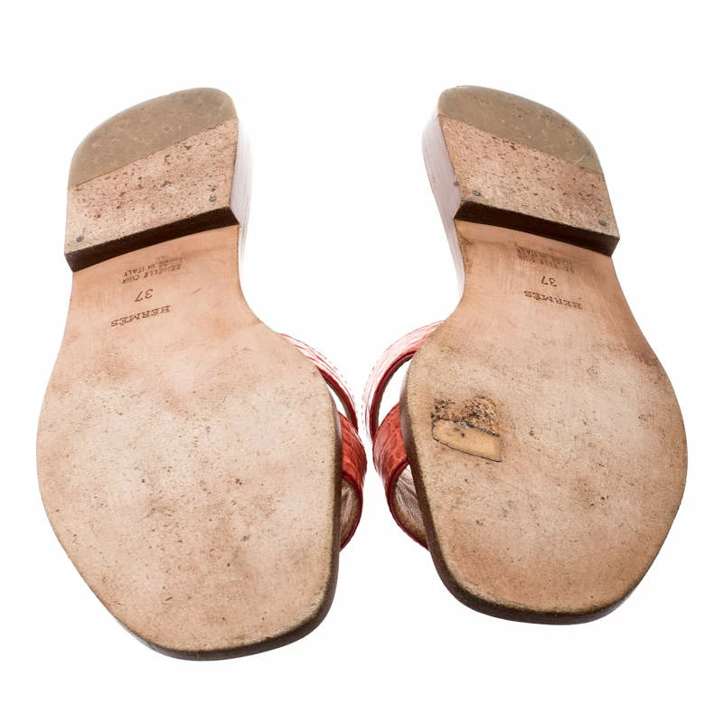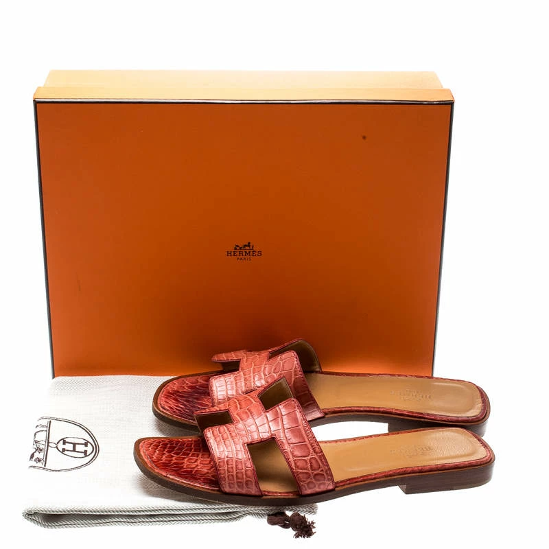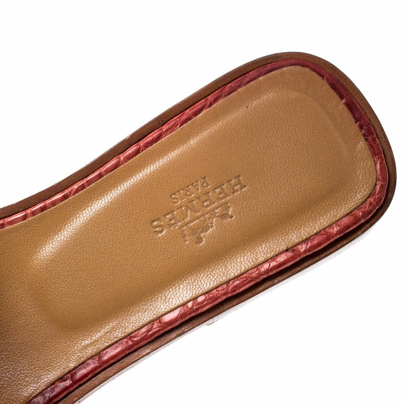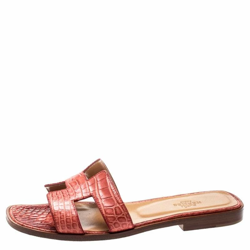 Put your best foot forward this season in these pretty Hermes sandals. These pink Oran sandals have been crafted from croc leather in Italy and they feature the iconic H on the vamps and insoles that are meant to provide comfort at every step. These sandals are sure to attract admirers!