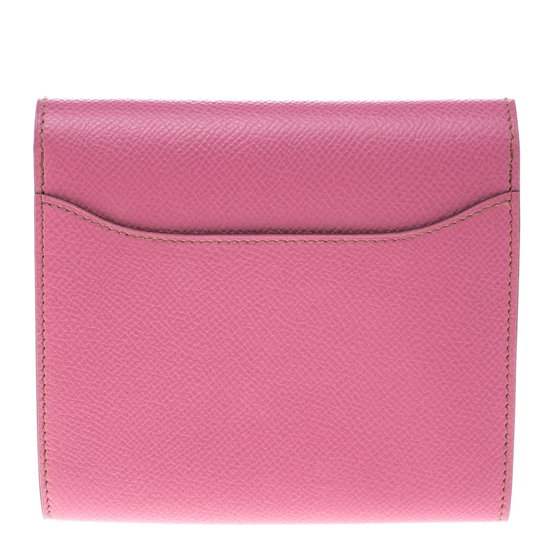 The Constance wallet from Hermes is nothing less than a wondrous work of art. It is crafted with Epsom leather and is secured by a palladium-plated ‘H’ tab closure. It has undergone the excellent work of talented artisans, with every stitch giving praise to high quality and authenticity. It boasts a well-sized leather interior with a zip compartment and multiple slots for your ease. Brimming with lavish details and artistry, this lovely pink creation deserves to be owned by no one but you.