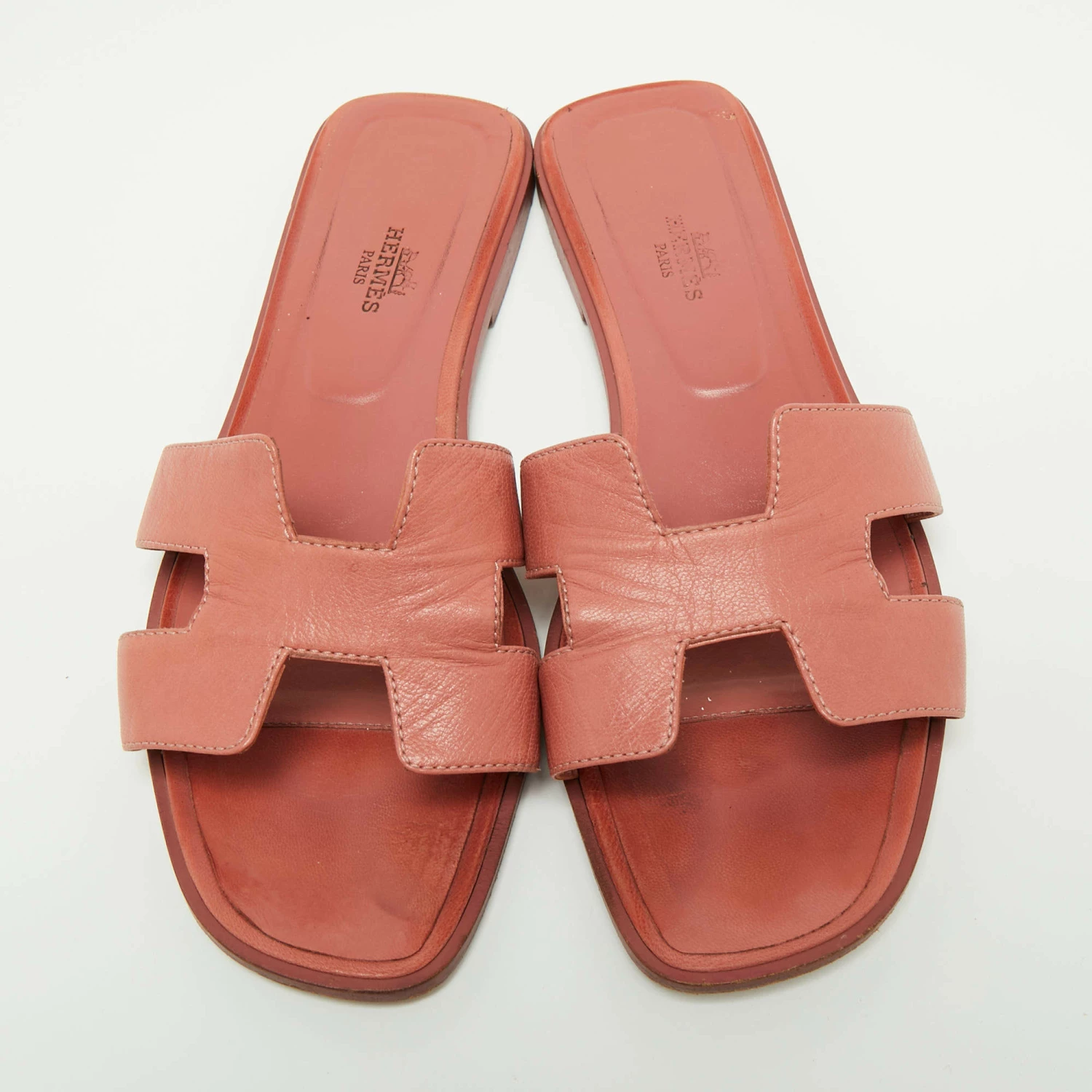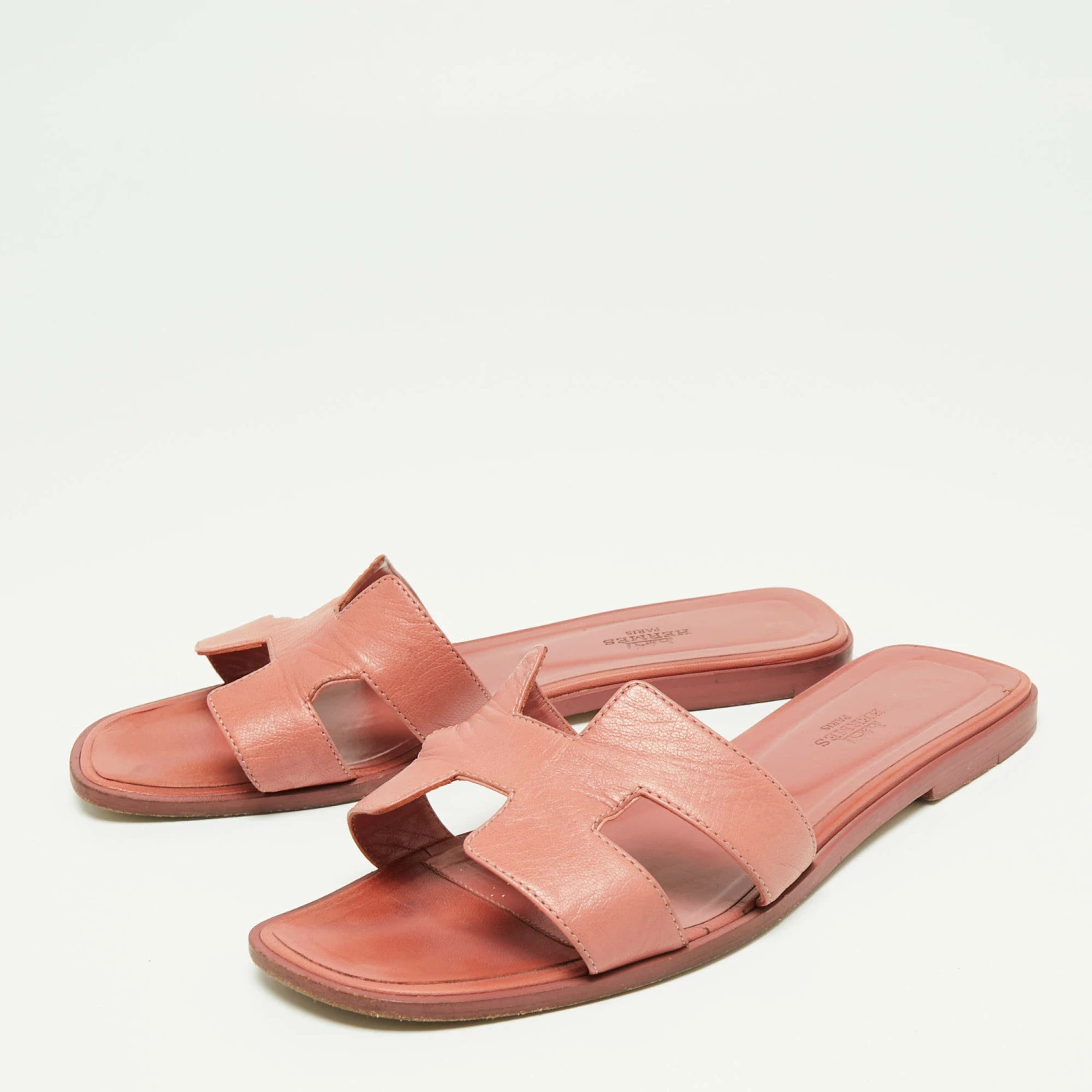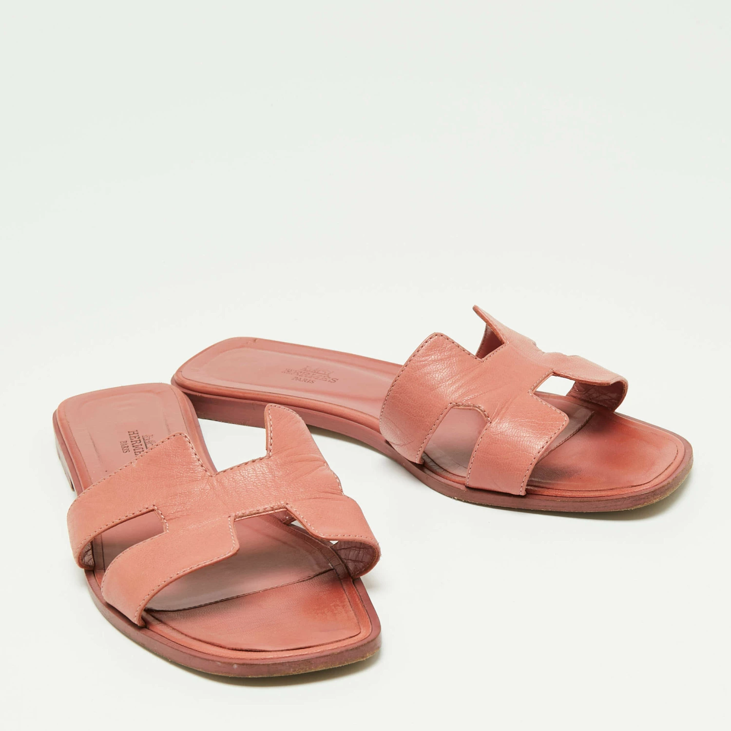 Add the iconic Hermès Oran sandals to your shoe collection with this pair. These pink-hued flats have been crafted in Italy and they feature the iconic H on the vamps and lined insoles in leather to provide comfort at every step.