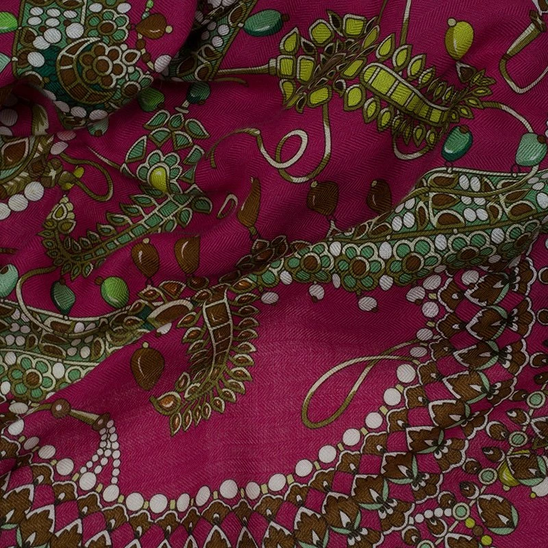 Wear some royalty with this Parures Des Maharajas scarf by Hermes. Made from soft cashmere, and silk, the crown print on the scarf makes this an elegant choice.