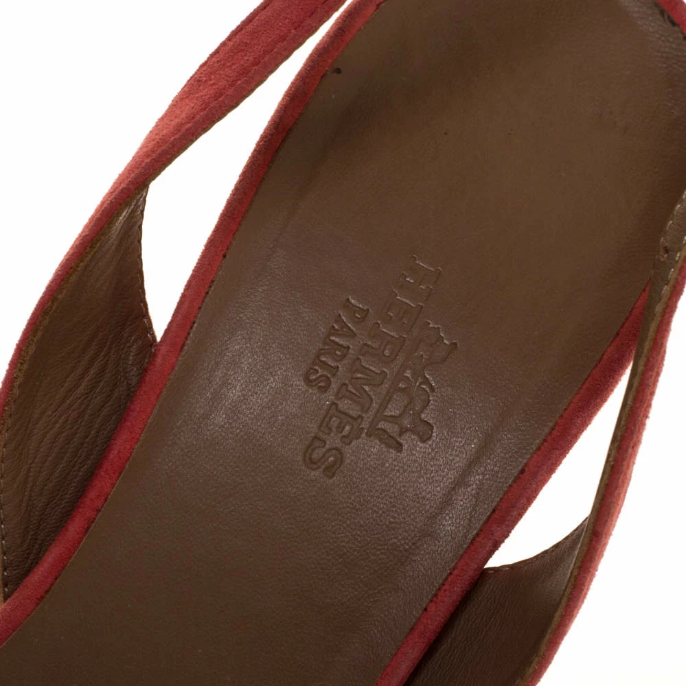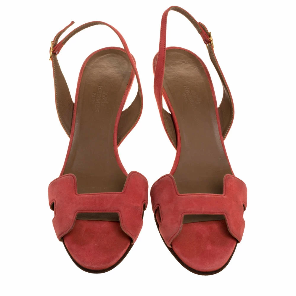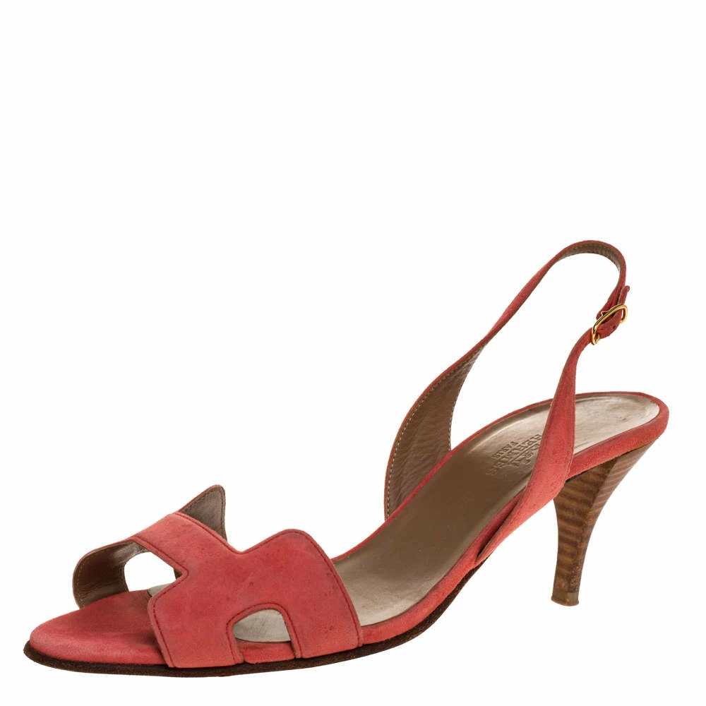 Put your best foot forward wherever you go in these pretty Hermes sandals. They’ve been crafted from suede in Italy and feature the iconic H on the vamp. Buckle-held slingbacks and 7 cm heels beautifully complete the pair. These sandals are sure to attract admirers!