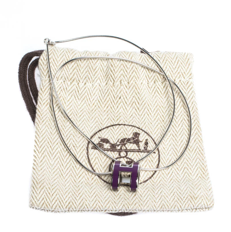 Giving your outfit a splash of color, this Hermes pendant is a perfect addition to any outfit. Shaped with the brand’s H logo, it has purple enamel between the palladium-plated metal. The circular silhouette of this pendant makes it pop out and visible.