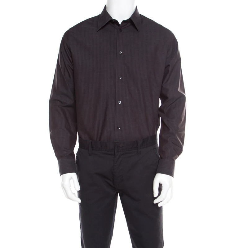 A shirt that is versatile to wear at any event, is just what this Hermes creation is about. It is tailored with cotton and has a precise finishing. Designed for a sophisticated look, the shirt features long sleeves, a classic collar and buttoned closure. The striped pattern enhances the look of this fabulous purple shirt.