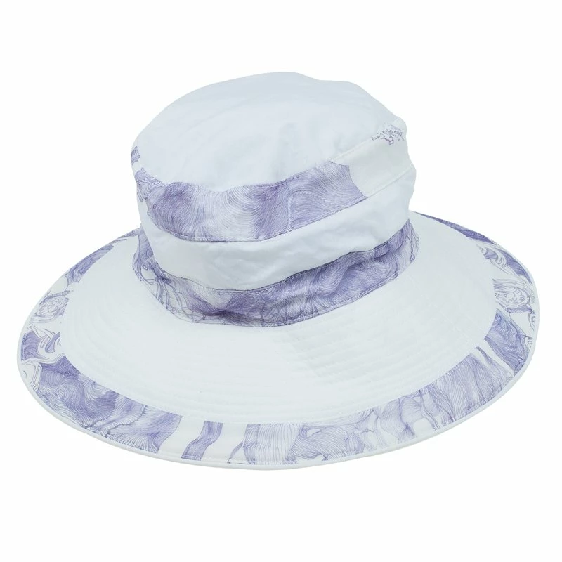 This Hermes Fedora is a hat with a wide brim and a flat crown and carries brand labeling. Crafted from purple and white cotton, this hat is sure to be your prized holiday head gear.