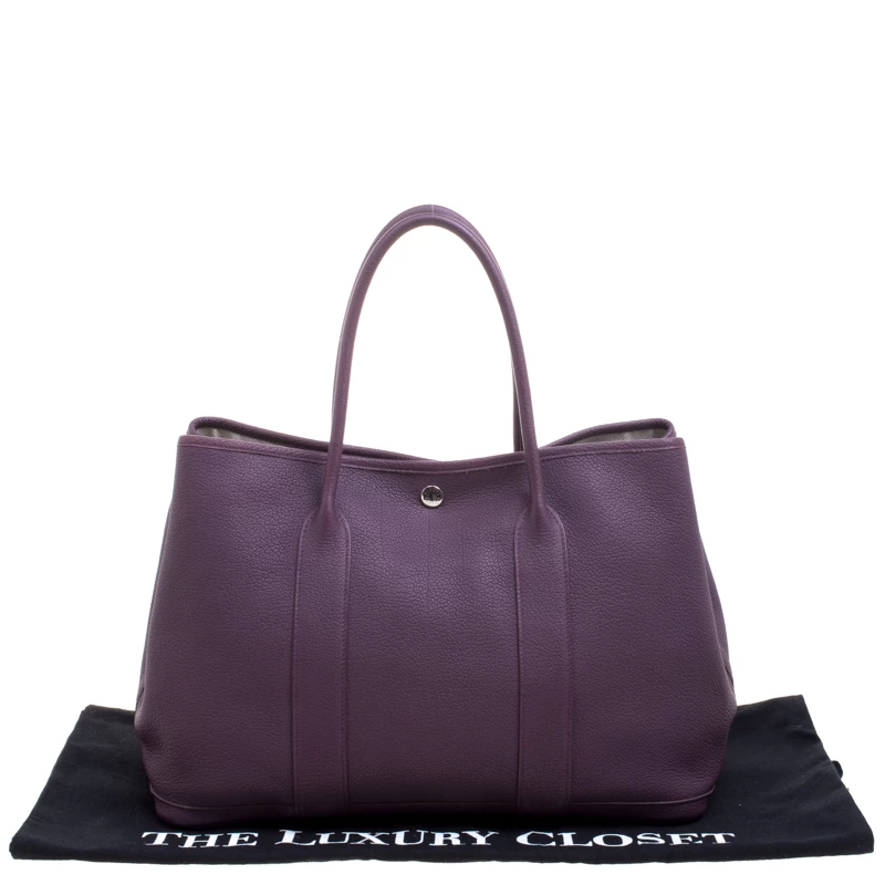 Look every part the royal diva you are by swinging this exquisite Garden Party tote from Hermes. This beauty has been meticulously crafted from togo leather and equipped with two top handles for you to parade it. Its fabric interiors are perfectly sized to carry your essentials, while the snap buttons give the bag a structured shape. Also, the luxurious purple hue just adds more to its glory and makes it a truly worthy buy.