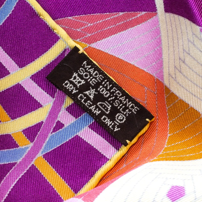 Hermes’ scarf is beautifully adorned with L’art Du Temari print. Temari or handcrafted balls originating in Japan are shown in different sizes, colours and geometric patterns on this scarf which is cut from silk into a square shape. This one is true collectible.