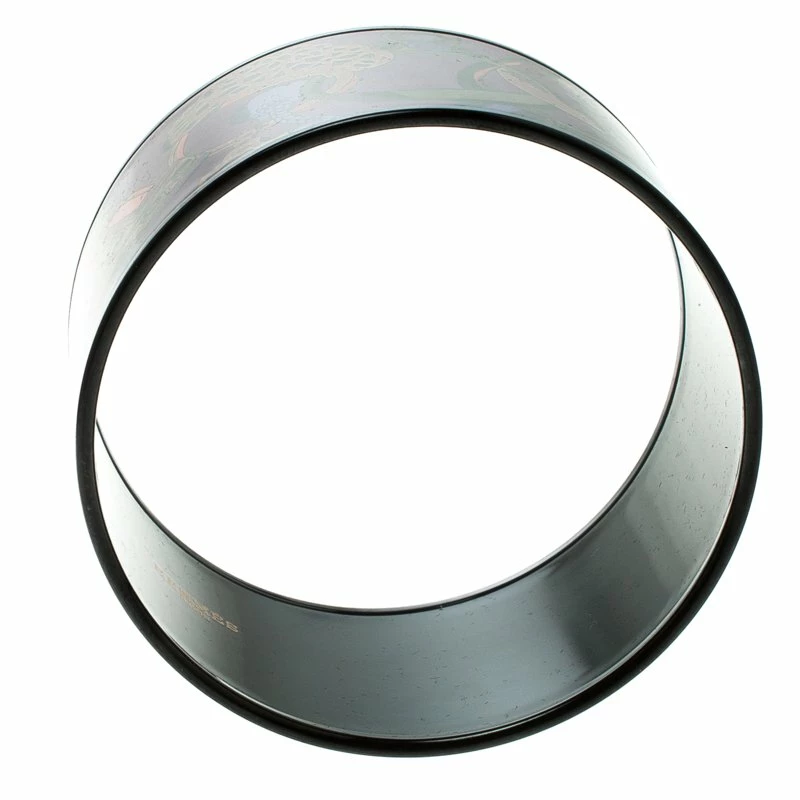 Hermes is known to create unique, one of their kind pieces. Crafted in black PVD plated enamel, the bangle style bracelet has a unique purplel print pattern all over it juxtaposed with the extra wide structure. It comes with the brand name neatly printed on the inside. Wear this stylish and statement accessory with solid colored minimalist attires and let the bracelet shine for a change.
