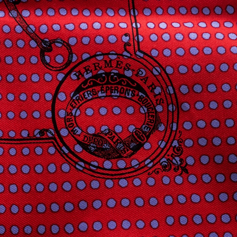 Speak luxury through your choice of accessories with this pocket square from Hermes. It has been cut from silk and designed with Mors De Selle prints and polka dots all over.