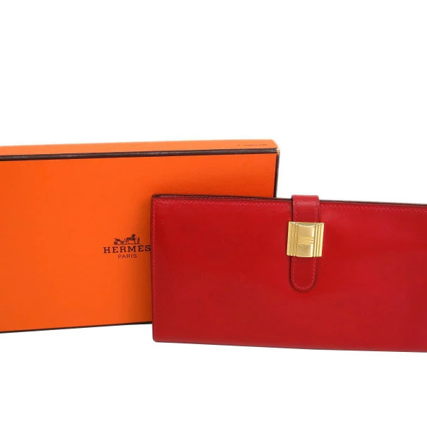 Hermes Red Box Calf Leather Herakles Long Wallet For Men