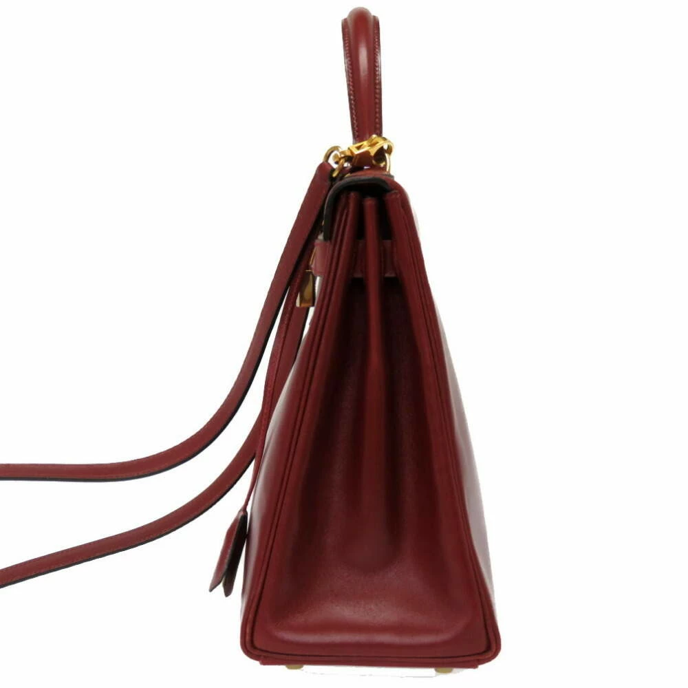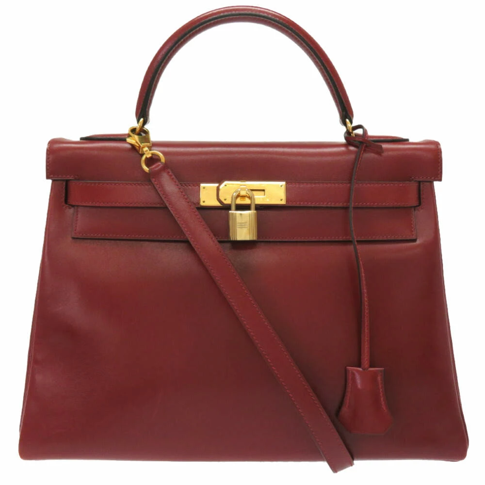 Sophisticated and elegant, this striking Hermes Kelly bag is a closet staple. Designed in Calf leather, this attractive red bag will effortlessly elevate all your outfits. Distinguished by a box silhouette, it features a rolled leather top handle and a gold lock hardware.