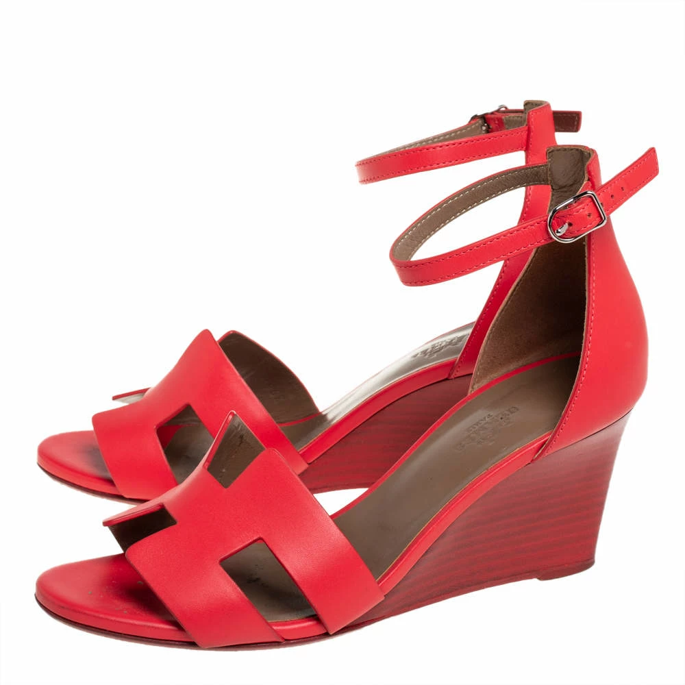 These comfortable Legend sandals from Hermes are ideal for those days when you have to spend long hours outdoors. The red sandals come crafted from leather and feature ‘H’ vamp straps and buckle ankle fastenings. They are equipped with leather-lined insoles and elevated on 7 cm wedge heels.
