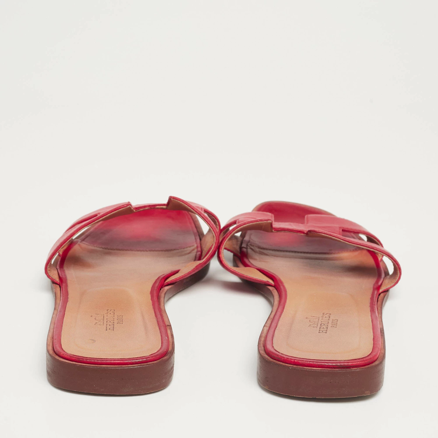 Add the iconic Hermès Oran sandals to your shoe collection with this pair. These red Oran flat sandals have been crafted in Italy using leather and they feature the iconic H on the vamps and lined insoles to provide comfort at every step.