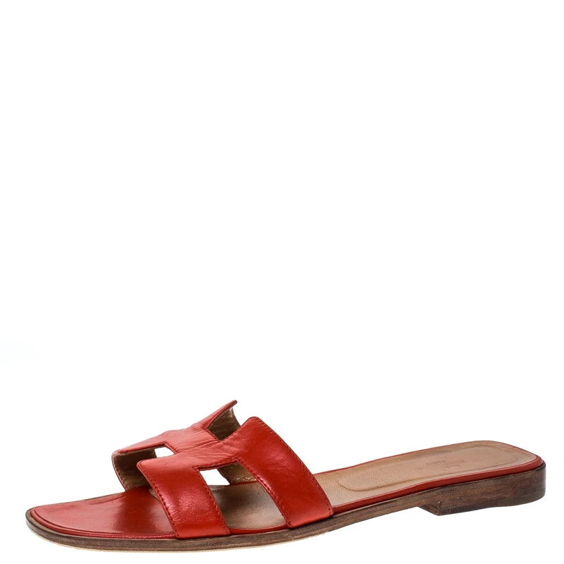 Put your best foot forward this season in these pretty Hermes sandals. These red Oran sandals have been crafted from leather in Italy and they feature the iconic H on the vamps as well as insoles meant to provide comfort at every step. These sandals are sure to attract admirers!