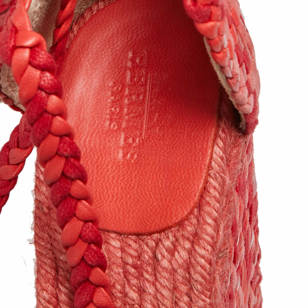 Get these Epice Tresse sandals home today, crafted by the house of Hermes. Having a woven exterior made from leather & suede, the red & pink sandals are contemporary and chic. They have wedge heels, ankle wraps, and espadrille insoles.