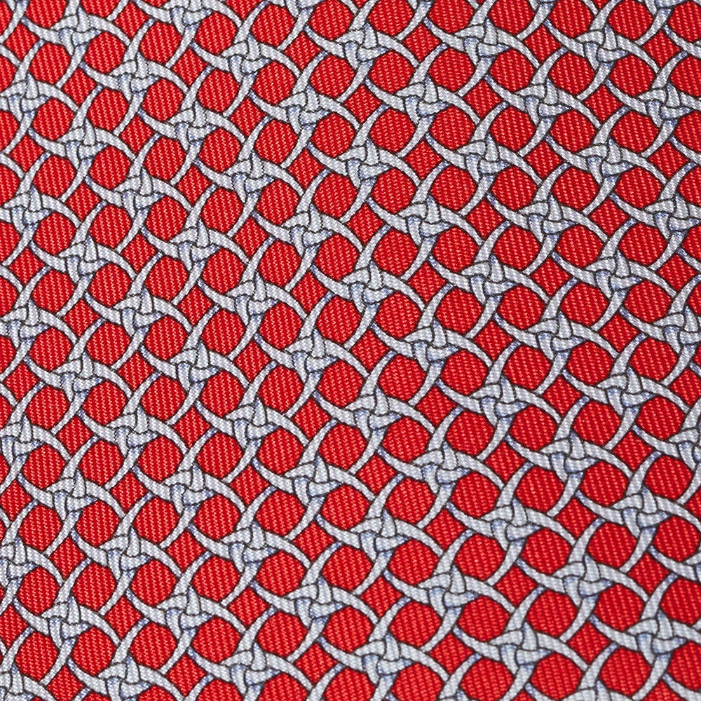 Pick this Hermès red tie to give your formal look a touch of luxury. It is cut from silk and detailed with luxe patterns all over. Made in France.