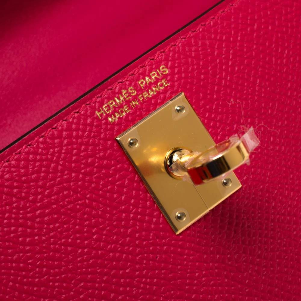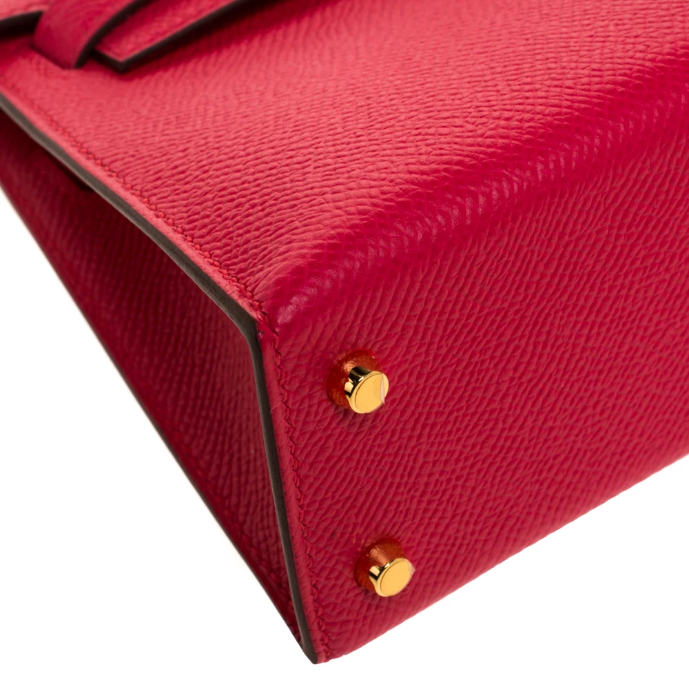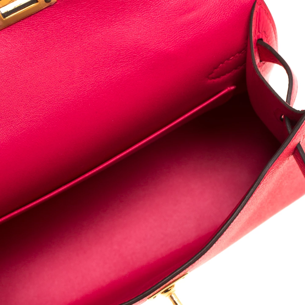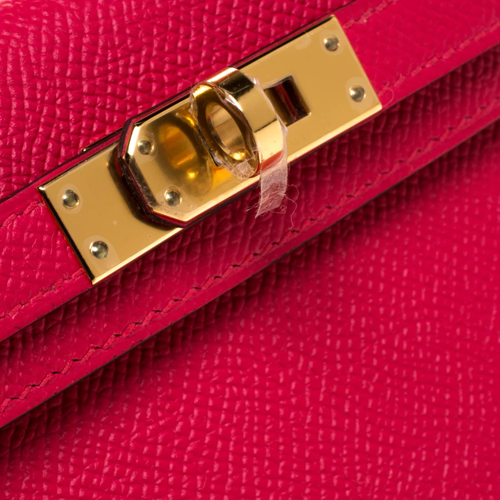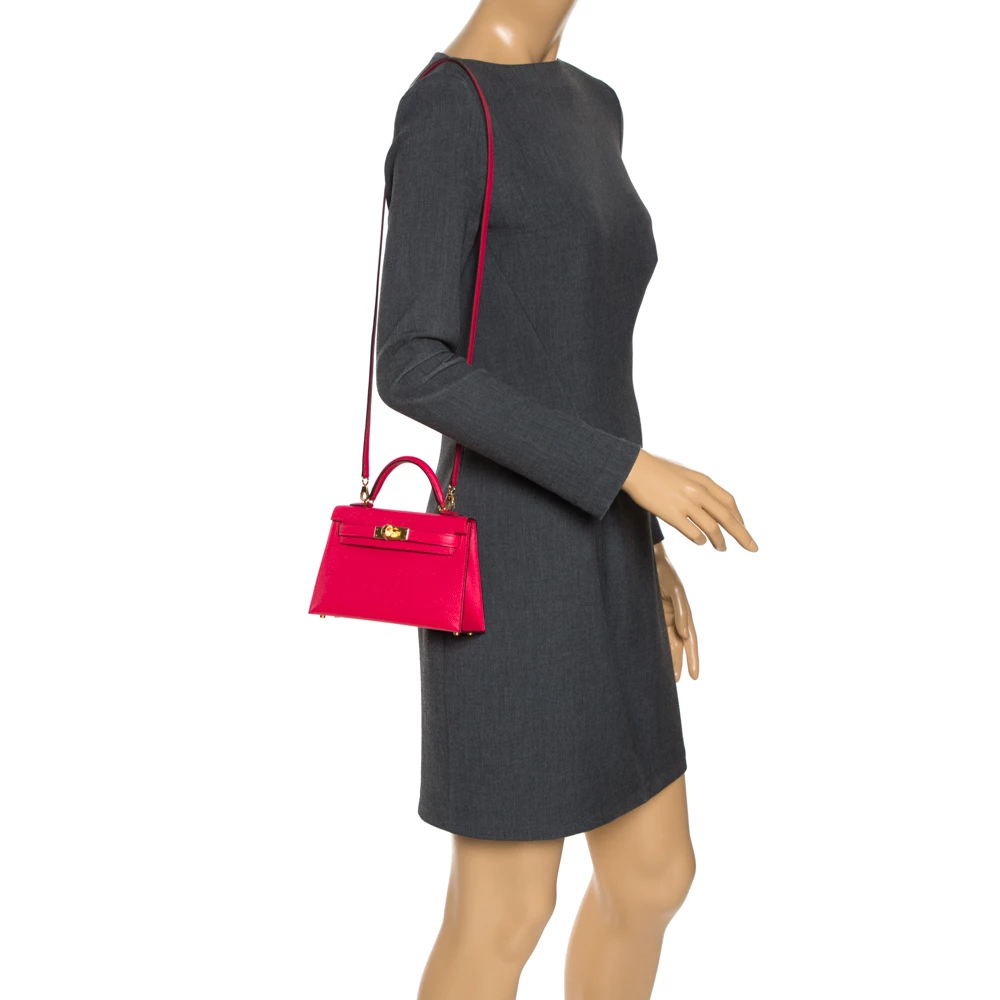 After Grace Kelly, the Hollywood star and a princess, used her Hermes bag to hide her baby bump and subsequently, the public started referring the bag after her name, Hermes officially titled it after her, and thus the Kelly bag was born. Gone through several iterations, the Kelly is known for its simple design and unmatched elegance. This mini Kelly bag is rendered in red leather with its classic foldover top. The flap comes with a gold-tone turn-lock closure which can be fastened with the padlock, whose keys are skillfully concealed in an attached leather clochette. The leather-lined interior of the bag is designed for the modern, independent women. The structured top handle can be carried over your arms while the detachable shoulder strap can be used when you want to march freely.