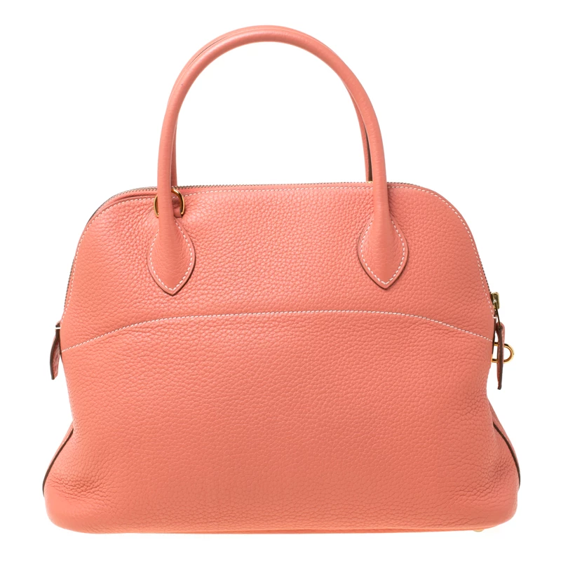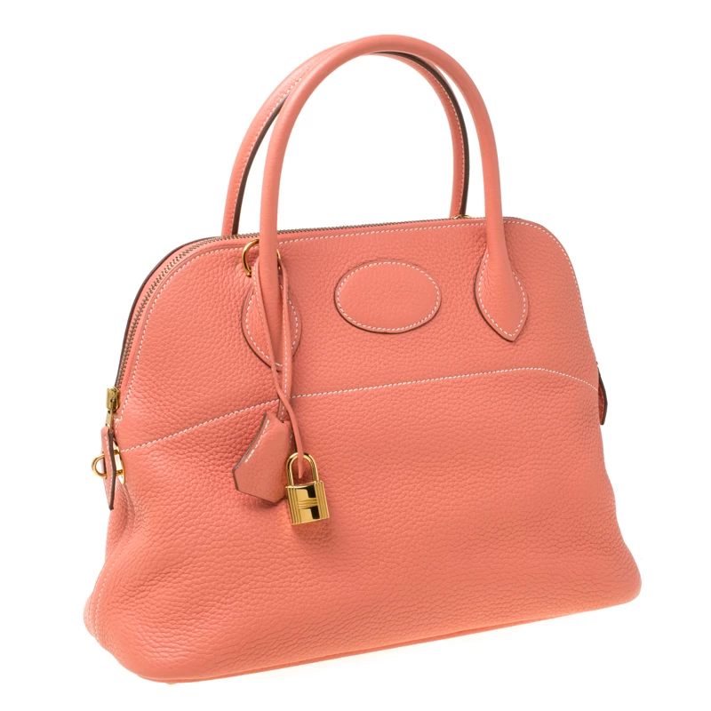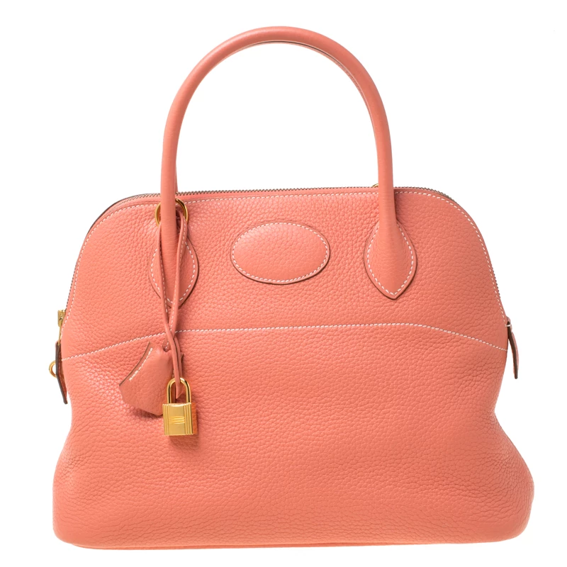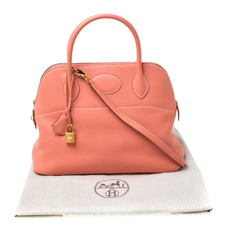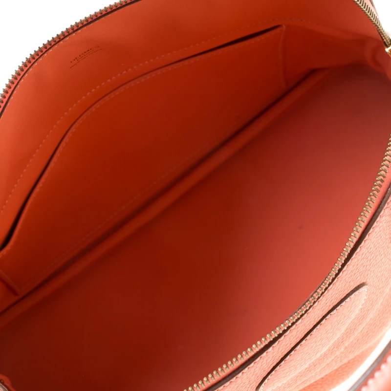 Luxuriously crafted by the experts at Hermes, this stunning Bolide bag is a must-have accessory for fashion lovers. An apt everyday wear bag, it is the perfect combination of sophistication and practicality. Crafted from rose candy Togo leather, this bag features a top zipper closure and a leather interior that provides you with ample storage space for all your essentials. The bag features a padlock with its keys within a clochette and can be worn on your arms with the two top handles or comfortably on the shoulder with the long strap.