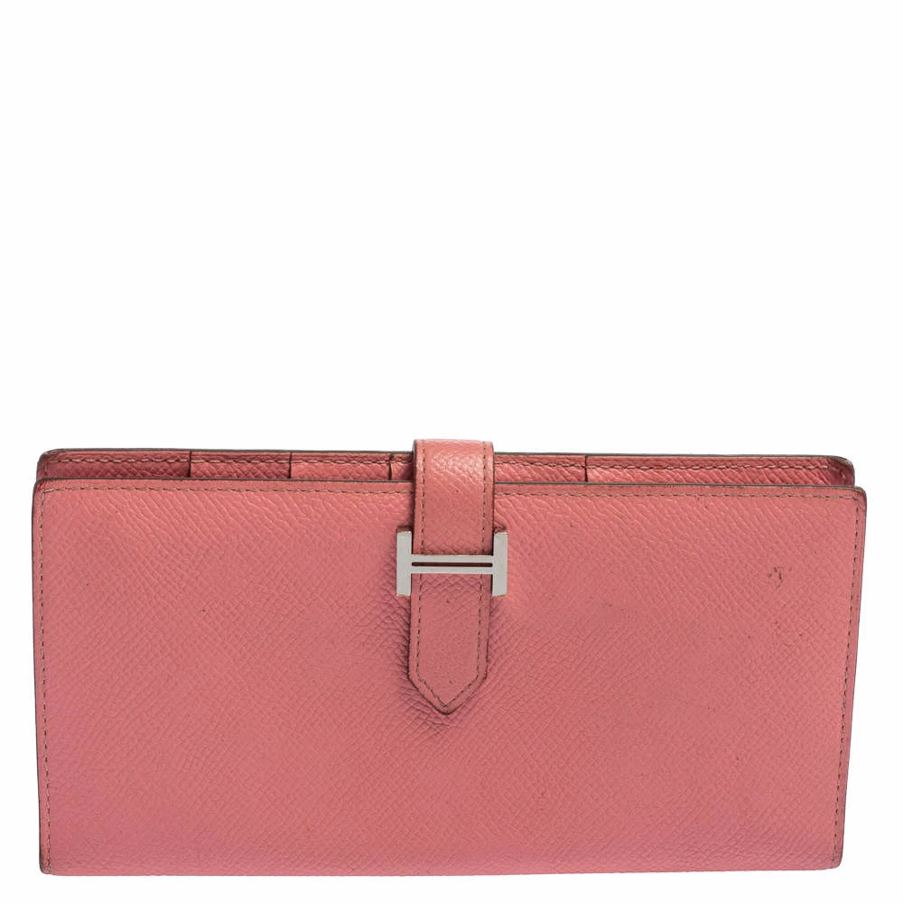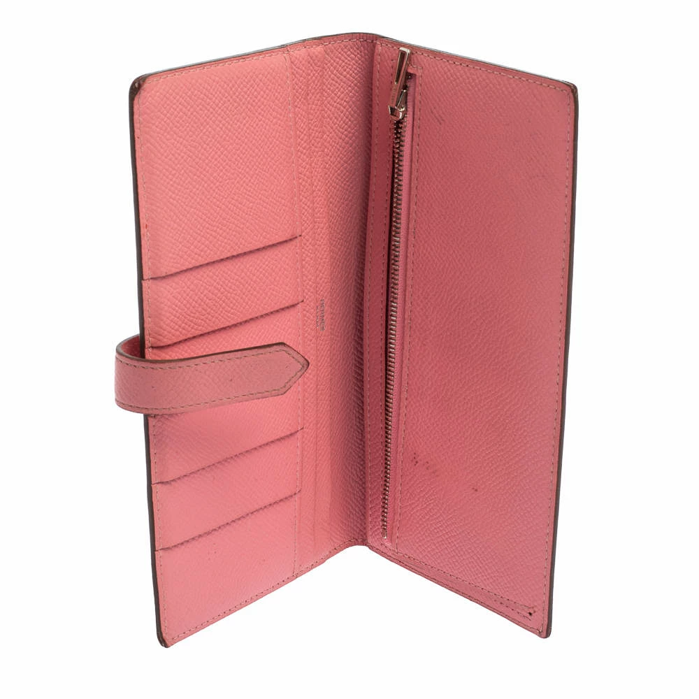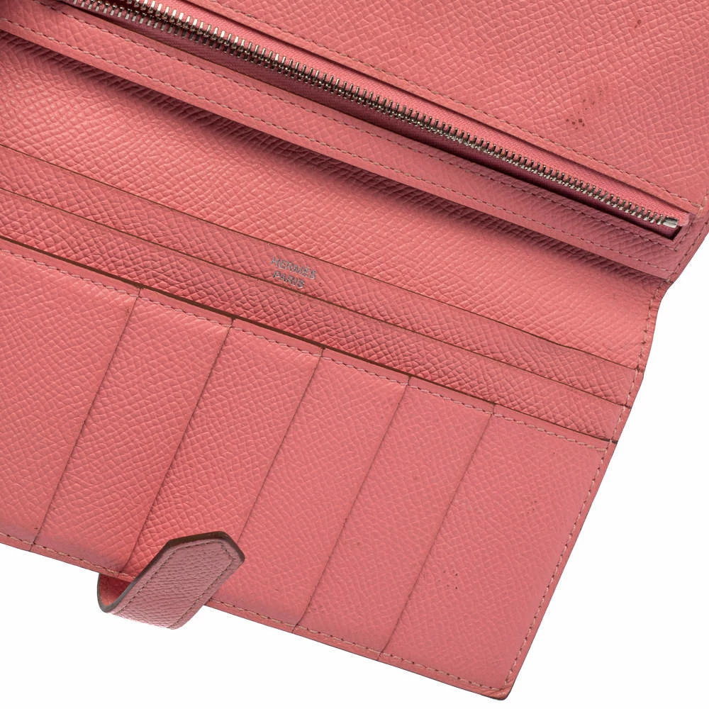 Luxuriously crafted by the experts at Hermes, this stunning Bearn Gusset wallet is a splendid accessory. Crafted in Epsom leather, this wallet carries an elegant appeal and a sleek silhouette. It features a palladium H on the front strap and a leather-lined interior. This wallet is a charmer that can be carried solo in your hand or stowed easily in one of your bags.