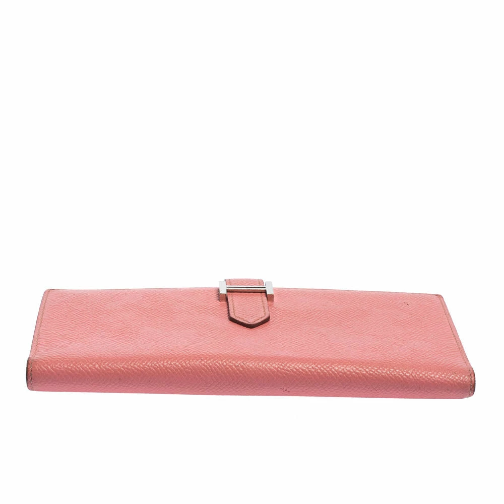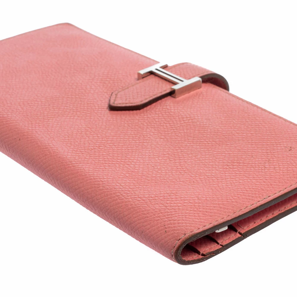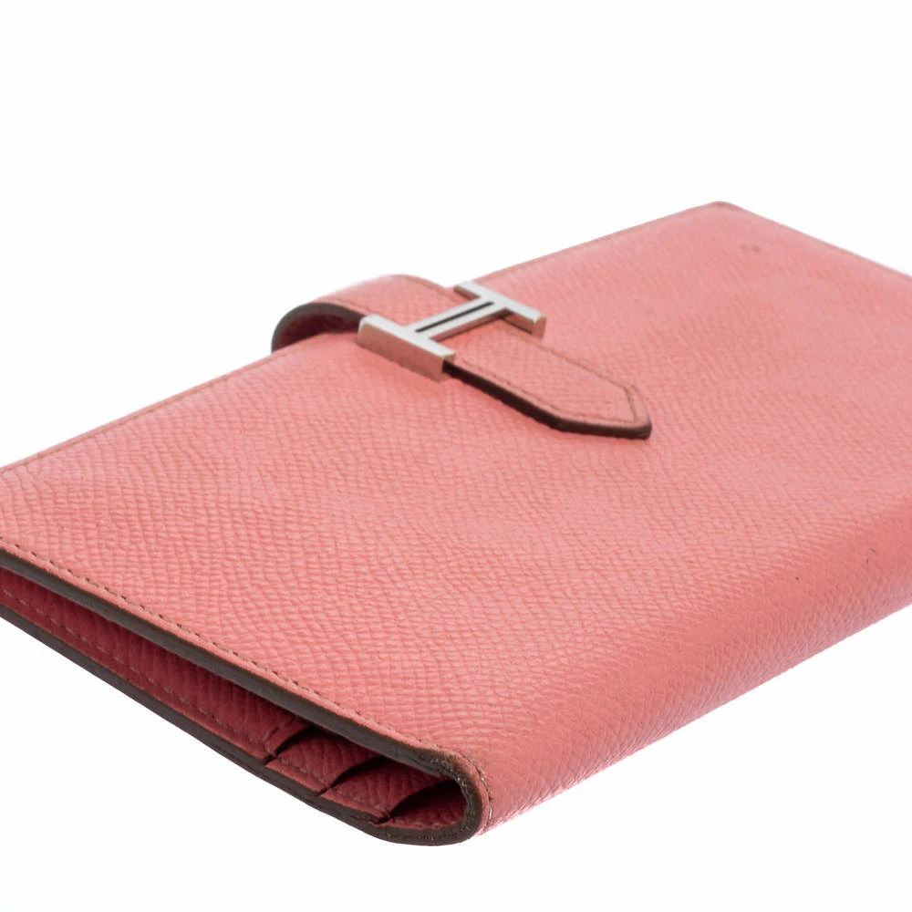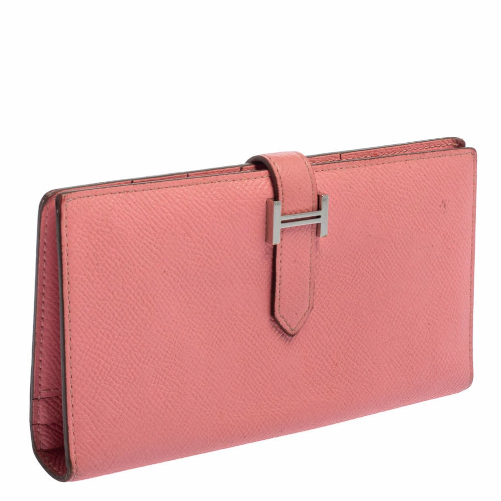 Luxuriously crafted by the experts at Hermes, this stunning Bearn Gusset wallet is a splendid accessory. Crafted in Epsom leather, this wallet carries an elegant appeal and a sleek silhouette. It features a palladium H on the front strap and a leather-lined interior. This wallet is a charmer that can be carried solo in your hand or stowed easily in one of your bags.