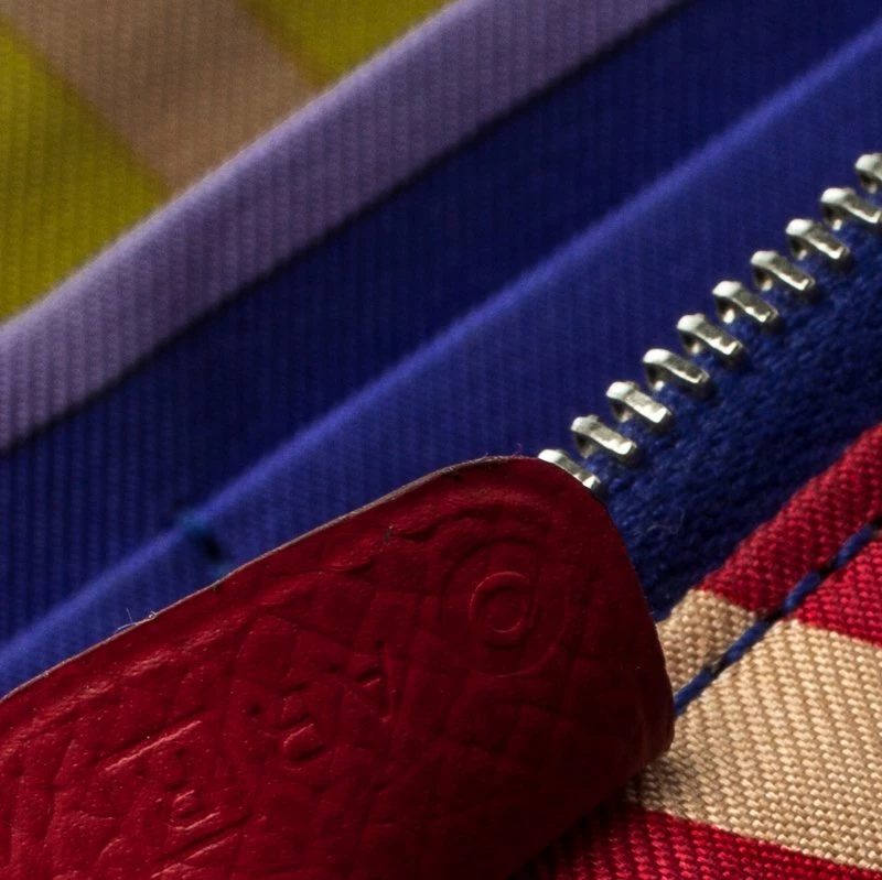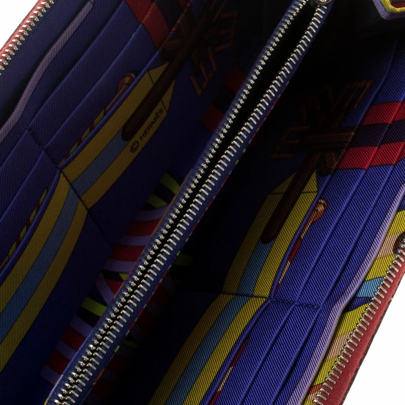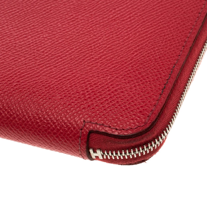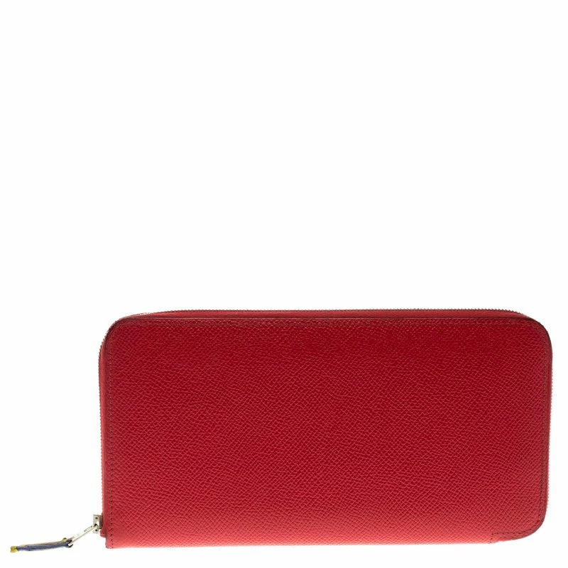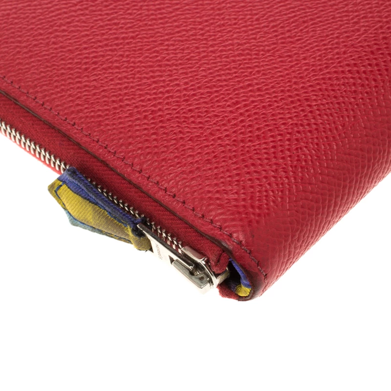 This Azap Silk In wallet from Hermes is designed for everyday use. The wallet is crafted from leather in a gorgeous red color. The zip around wallet opens to a fabric lined interior that has multiple card slots, a coin zip pocket and two open compartments for you to arrange your cash or bills. This sleek wallet will easily fit in your Hermes Birkin.