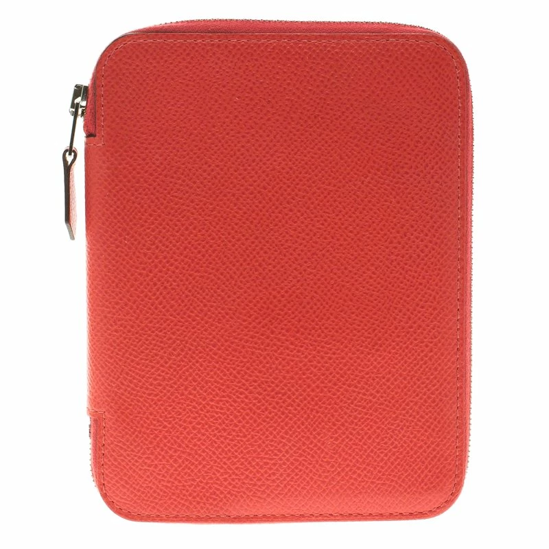 Write a lot and keep your words tucked away safely with this Rose lipstick epsom zip globe trotter agenda from the house of Hermes. Crafted from high quality leather, the piece features a textured body, stitched trim detail, and one main zip compartment. It’s the perfect companion for keeping your papers and cards safe and sound.