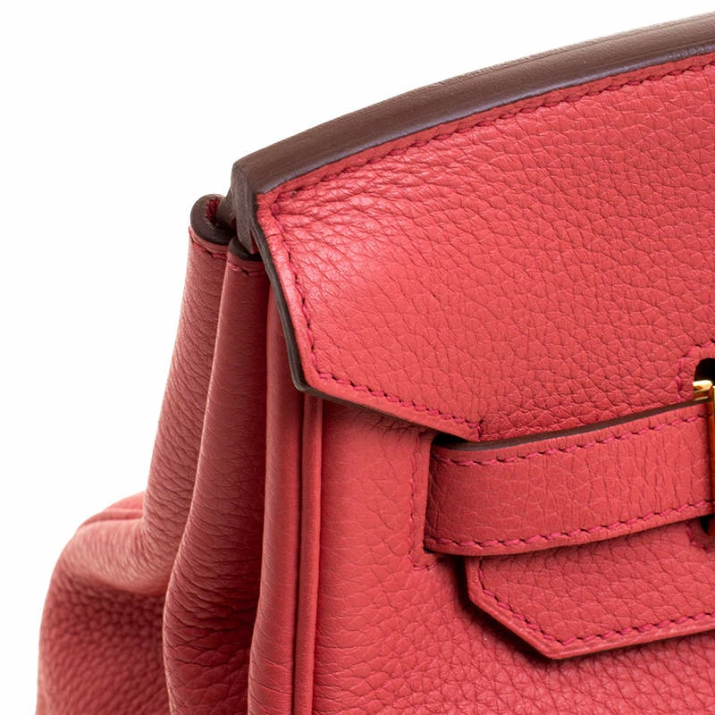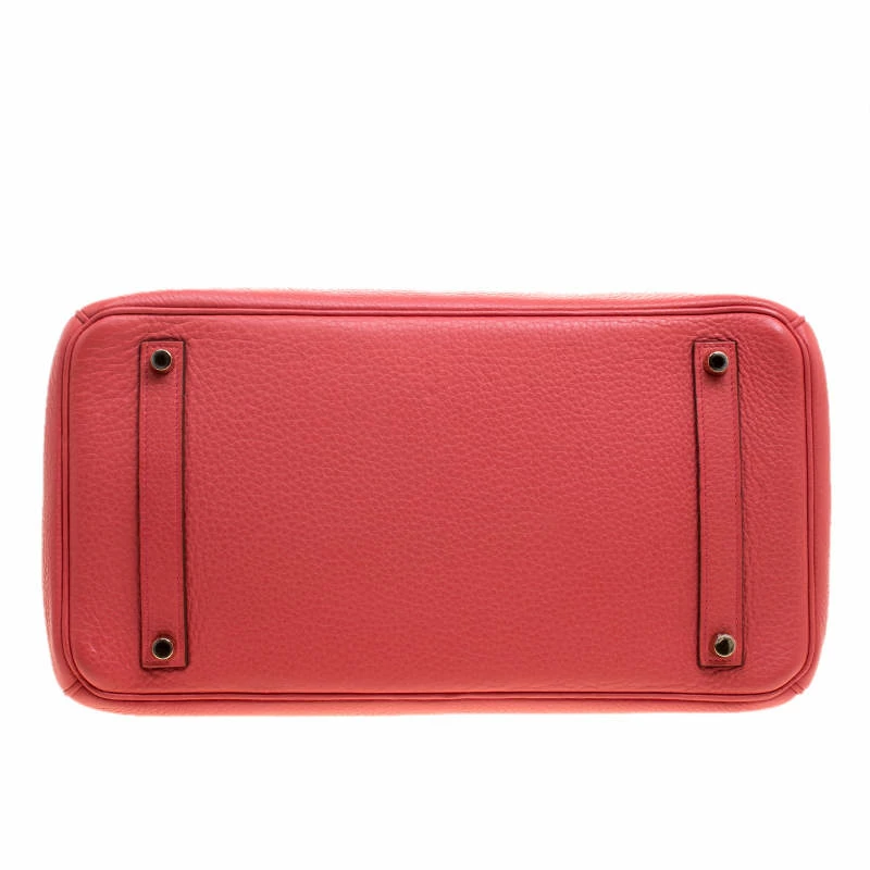 Hermes Birkin was inspired by Jane Birkin and is one of the most desired handbags in the world. A timeless classic that never goes out of style. Handcrafted from the highest quality of leather by skilled artisans, it takes long hours of rigorous effort to stitch a Birkin together. Crafted in France from Rose Lipstick Togo leather, the bag features dual top rolled handles and a padlock with its keys within a clochette. The bag comes with gold-tone hardware and has a spacious leather lined interior that houses a zip pocket. Birkin 35 can hold all your daily necessities and more. High quality and flawless craftsmanship are synonymous with Hermes. Invest in this collectible as it retains its value year after year!