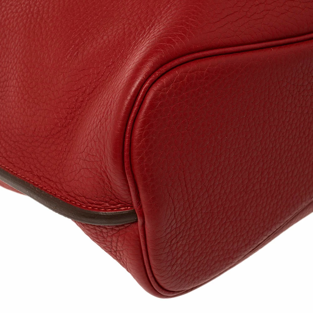 The elegant and timeless elements of the iconic Kelly is coupled with a more casual silhouette in this coveted So Kelly bag. It is crafted from red Togo leather in a slight bucket shape with the signature Kelly lock, in silver-tone on the front and an adjustable shoulder strap. Its spacious interior is lined with leather and equipped with pockets for your little belongings. Complete all your casual outfits with this stunner.