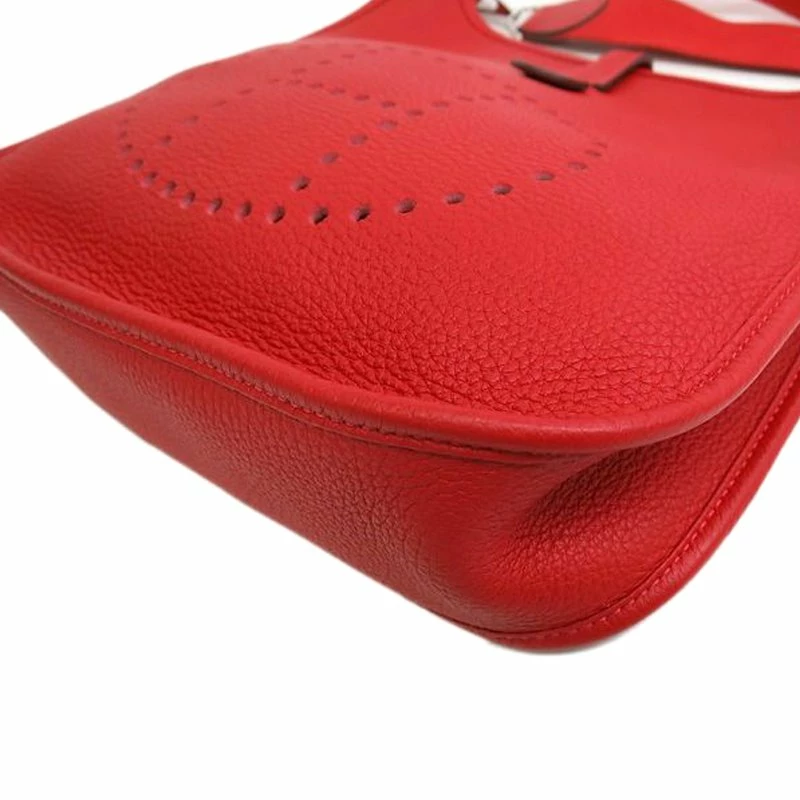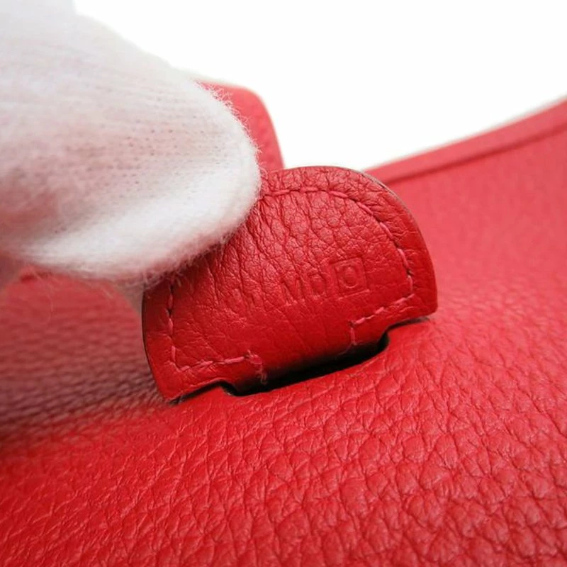 This Hermes bag is comfortable and fashionable. Made from calfskin, Clemence leather, this red bag features a leather strap flap with a snap closure and a perforated H logo on the front. It comes with an adjustable canvas shoulder strap and silver-tone hardware. The suede interior is roomy enough to hold your belongings and houses one leather patch pocket.