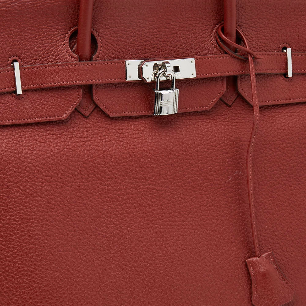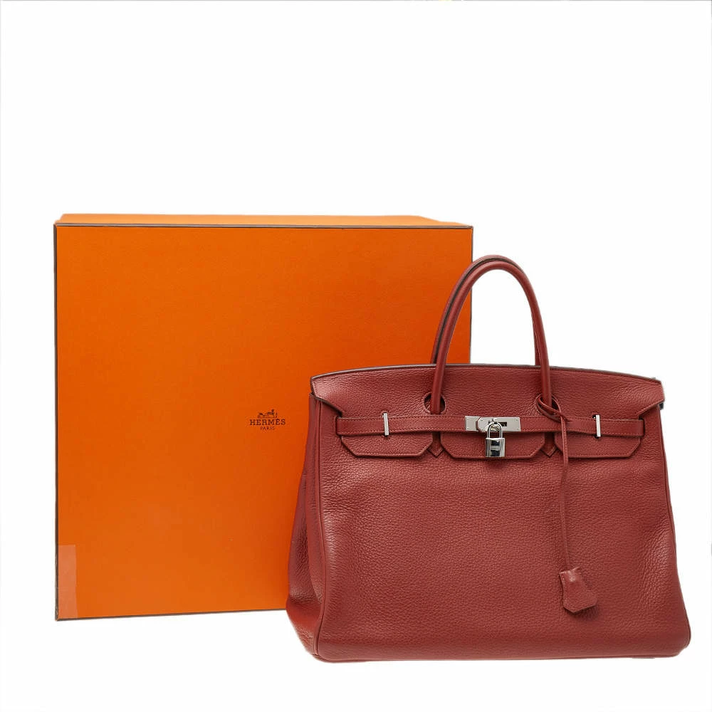 Hermes Birkin was inspired by Jane Birkin and is one of the most desired handbags in the world. A timeless classic that never goes out of style. Handcrafted from the highest quality of leather by skilled artisans, it takes long hours of rigorous effort to stitch a Birkin together. Crafted in France from leather, the bag features dual top rolled handles and a padlock with its keys within a clochette. The bag comes with silver-tone hardware and has a spacious leather-lined interior that will hold all your belongings. High quality and flawless craftsmanship are synonymous with Hermes. Durable and resistant to wear, the Birkin is a heritage that can last many years.