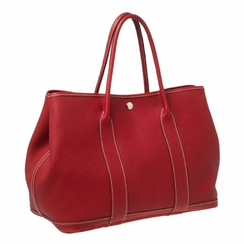 You’ll love swinging this exquisite Garden Party tote from Hermes. This beauty has been meticulously crafted from leather and equipped with two top handles for you to parade it. Its lined interior is perfectly sized to carry your essentials, while the snap buttons give the bag a structured shape. The luxurious hue just adds more to its glory and makes it a truly worthy buy.
