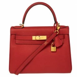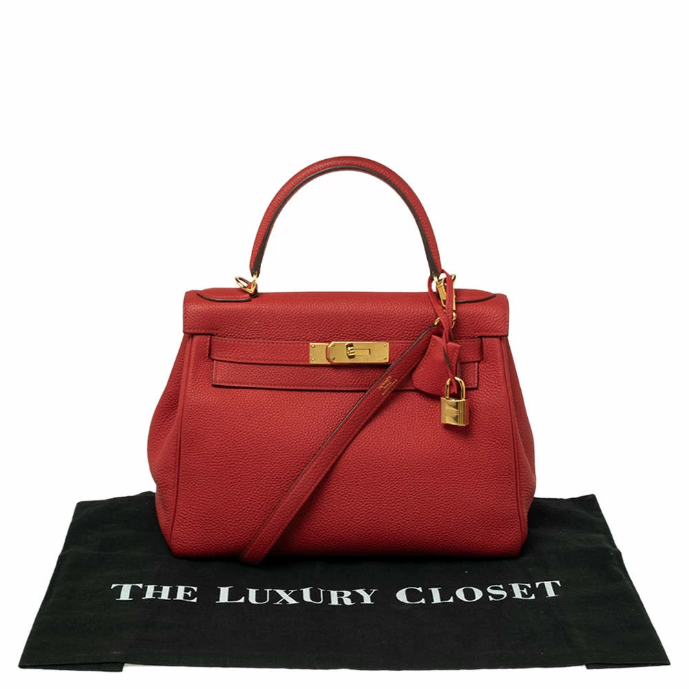 The Hermes Kelly is beautiful as it is carefully hand-stitched to perfection. This Kelly Retourne is crafted from Togo leather and has gold-plated hardware. Retourne has a more casual look and is stitched on the inside thus making its edges softer. The bag comes with a turn-lock closure, single top rolled leather handle, shoulder strap, and a padlock with its keys within a clochette. The leather-lined interior houses pockets and enough space to easily fit in all your daily necessities. Invest in this beauty today!