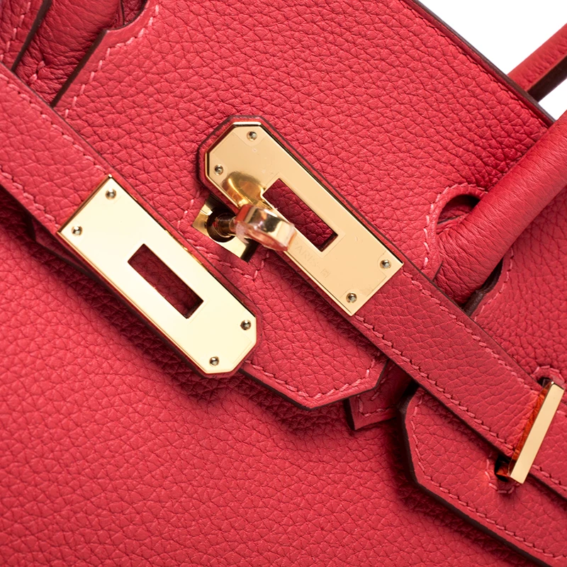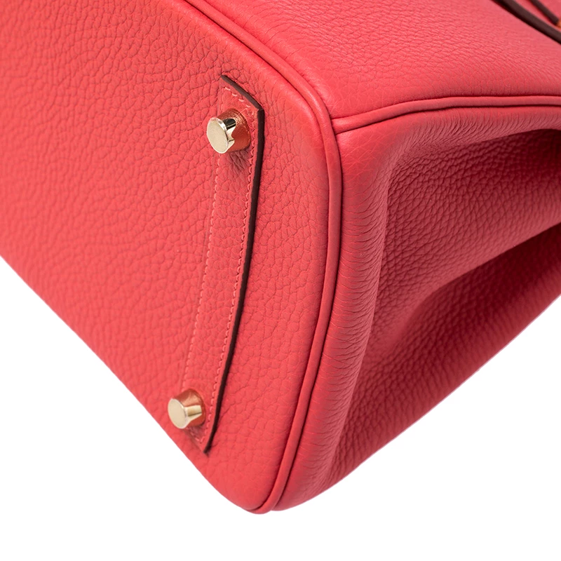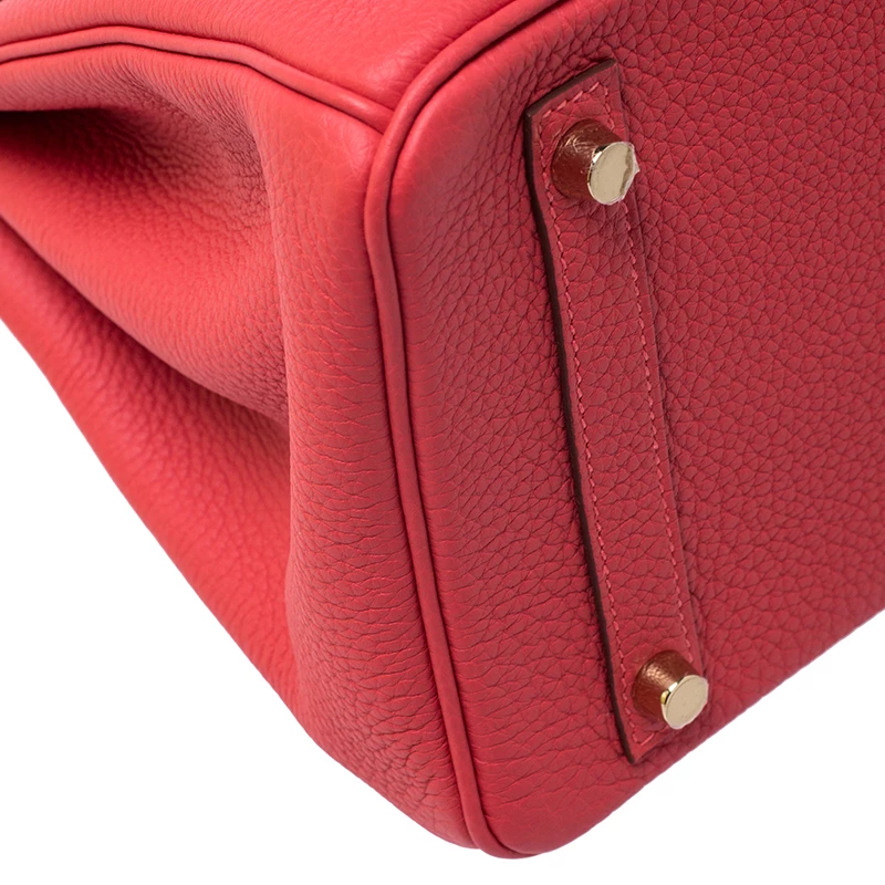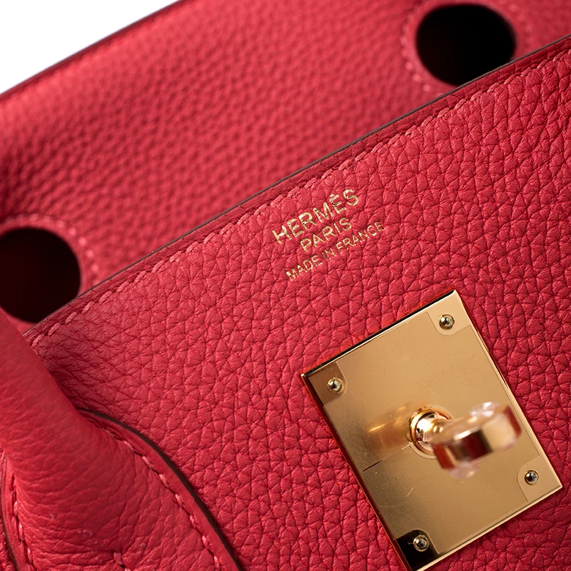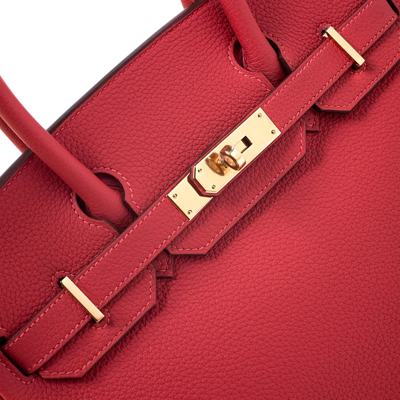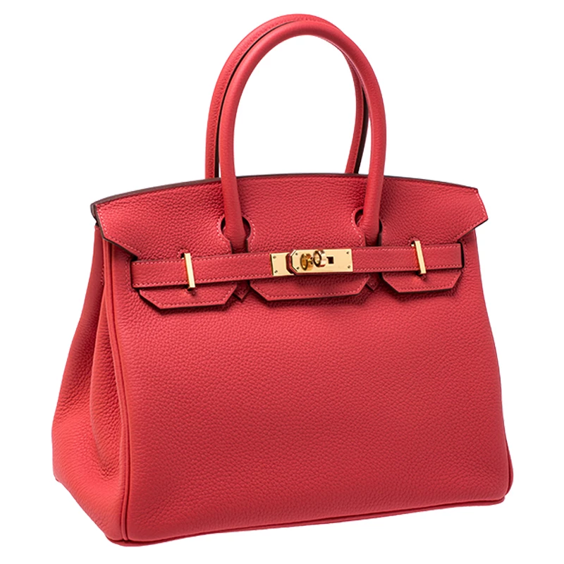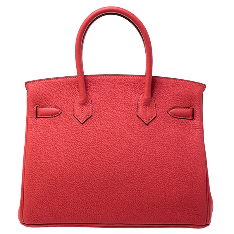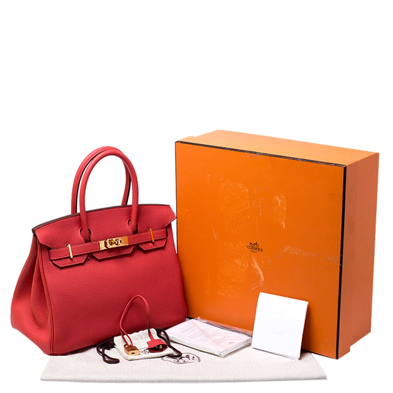A bag that has become a hallmark of luxury and class, the Birkin from Hermes is one of the most coveted bags in the world. Custom-made on the suggestions of Jane Birkin, hence the namesake, this bag is aimed to fit the wants of the fast-paced life of modern women. Timeless design coupled with rich craftsmanship, the body of this Birkin 30 bag is crafted from Togo leather in a red hue. Its foldover top is secured by gold-tone turn-lock closure which is accompanied by a padlock and a dangling key safe within a leather clochette. The interior of the bag has leather lining and is equipped with a pocket for storing little essentials. Complete with dual rolled handles and studs at the bottom, this bag is an investment that will last you for years.
