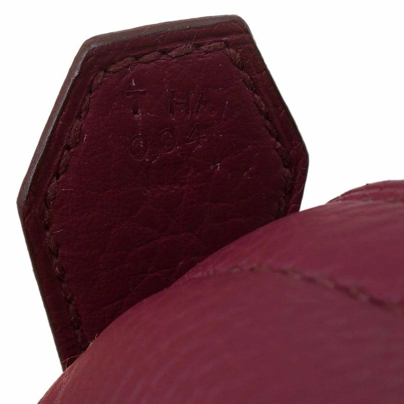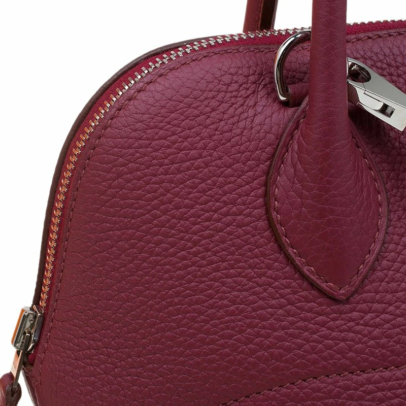Is made from Ruby colored Clemence bull calfskin leather that lends it a soft finish with a lovely rich, texture. With ample interior space, it can easily carry your daily must-haves. It is finished with Palladium plated hardware and a detachable shoulder strap. It also has four protective feet at the base.