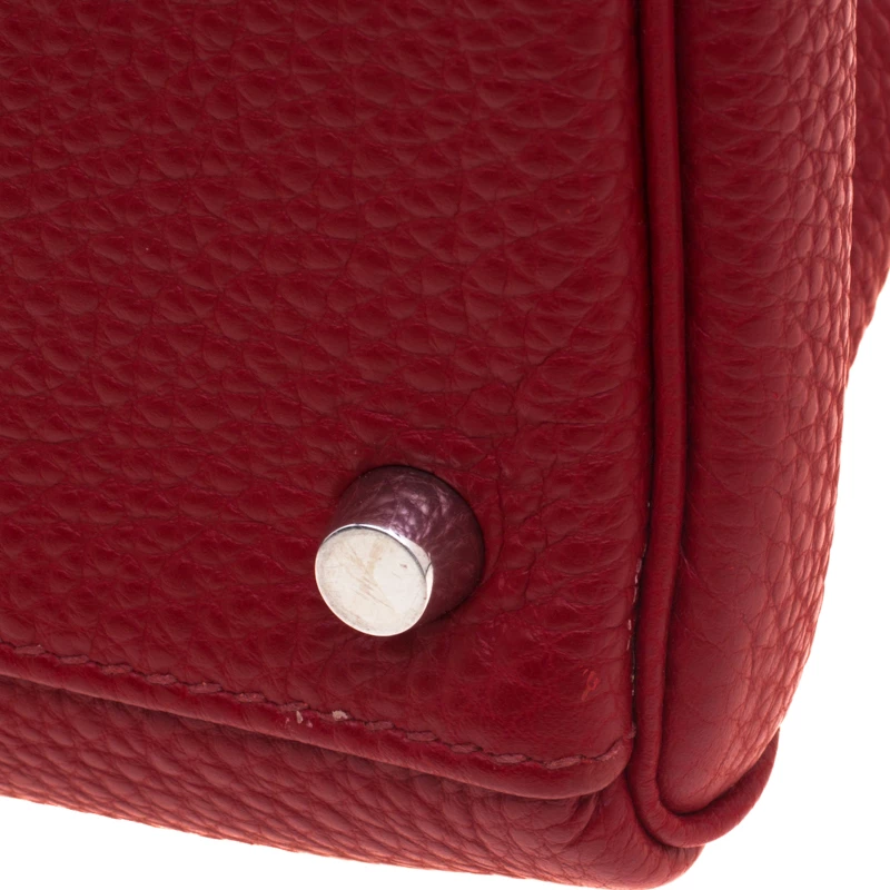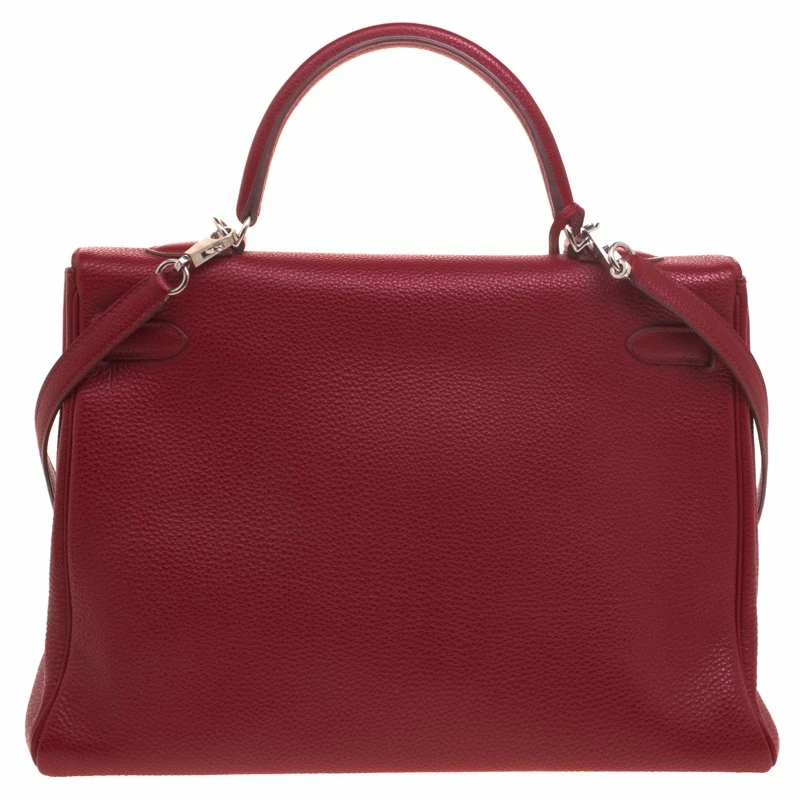 Inspired by none other than Grace Kelly of Monaco, Hermes Kelly is carefully hand stitched to perfection. This Kelly Retourne is crafted from Ruby Togo leather and has palladium hardware. Retourne has a more casual look and is stitched on the inside thus making its edges softer. The bag comes with a toggle closure, single top rolled leather handle, a detachable shoulder strap, a padlock, keys and a clochette. The interior is leather lined and houses a slip pocket. Kelly 35 can fit in all your daily necessities and more. Easy to carry, this investment piece will stand out in your bag collection.