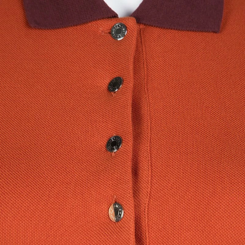 Made from soft and breathable cotton, this short-sleeved polo t-shirt by Hermes Seiler is styled with a contrast collar and four buttons running along the placket. The orange hue lends a fresh touch to the piece, making it ideal for casual outings.