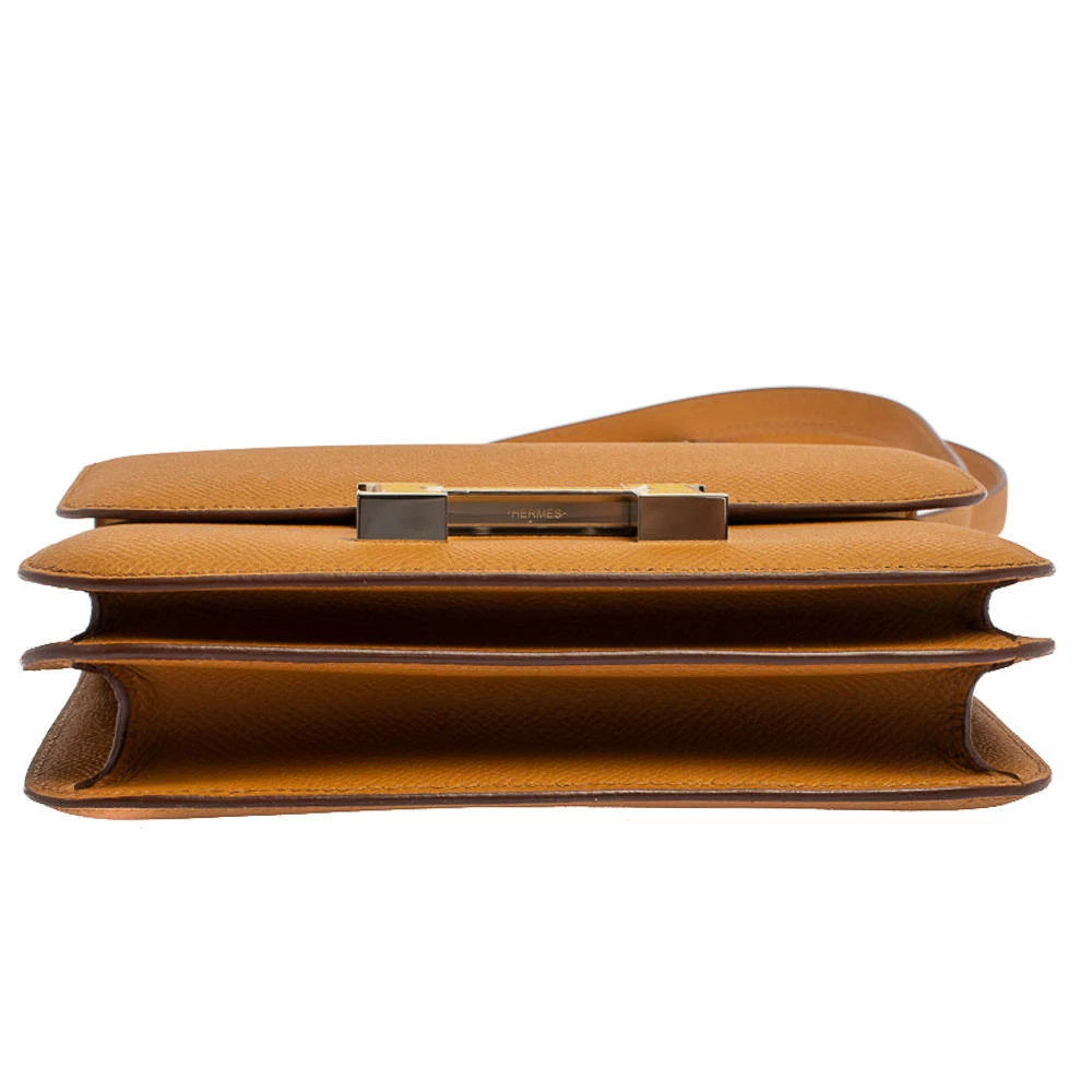 The bag was named the Constance when it was created in 1969, after the newborn daughter of Hermes’ designer, Catherine Chaillet. The creation is handcrafted from leather and features the iconic enamel lacquer detailed H clasp on the front flap. The shoulder strap lets you carry it gracefully, and the sturdy silhouette is loved by fashionistas worldwide. The leather-lined interior will help you carry your essentials with ease. Get this covetable piece for yourself today!