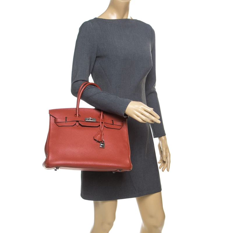 Hermes Birkin was inspired by Jane Birkin and is one of the most desired handbags in the world. A timeless classic that never goes out of style. Handcrafted from the highest quality of leather by skilled artisans, it takes long hours of rigorous effort to stitch a Birkin together. Crafted in France from Sienne leather, the bag features dual top rolled handles and a padlock with its keys within a clochette. The bag comes with palladium hardware and has a spacious leather lined interior that will hold all your belongings. High quality and flawless craftsmanship are synonymous with Hermes. Durable and resistant to wear, the Birkin is a heritage that can last many years.