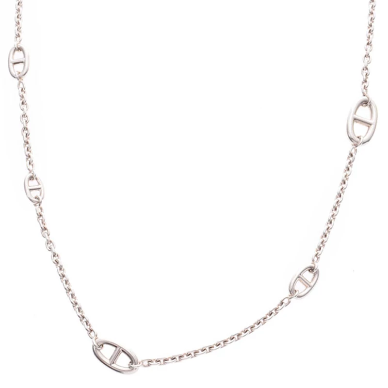 For a gorgeous standout, get yourself this stylish Hermes Shane Dunkle long necklace. Studded with fasteners in coordinating accent, this silver “chain of anchor” boats of superior quality and brilliant craftsmanship. Style it with both casual or formal outfits for a statement look.