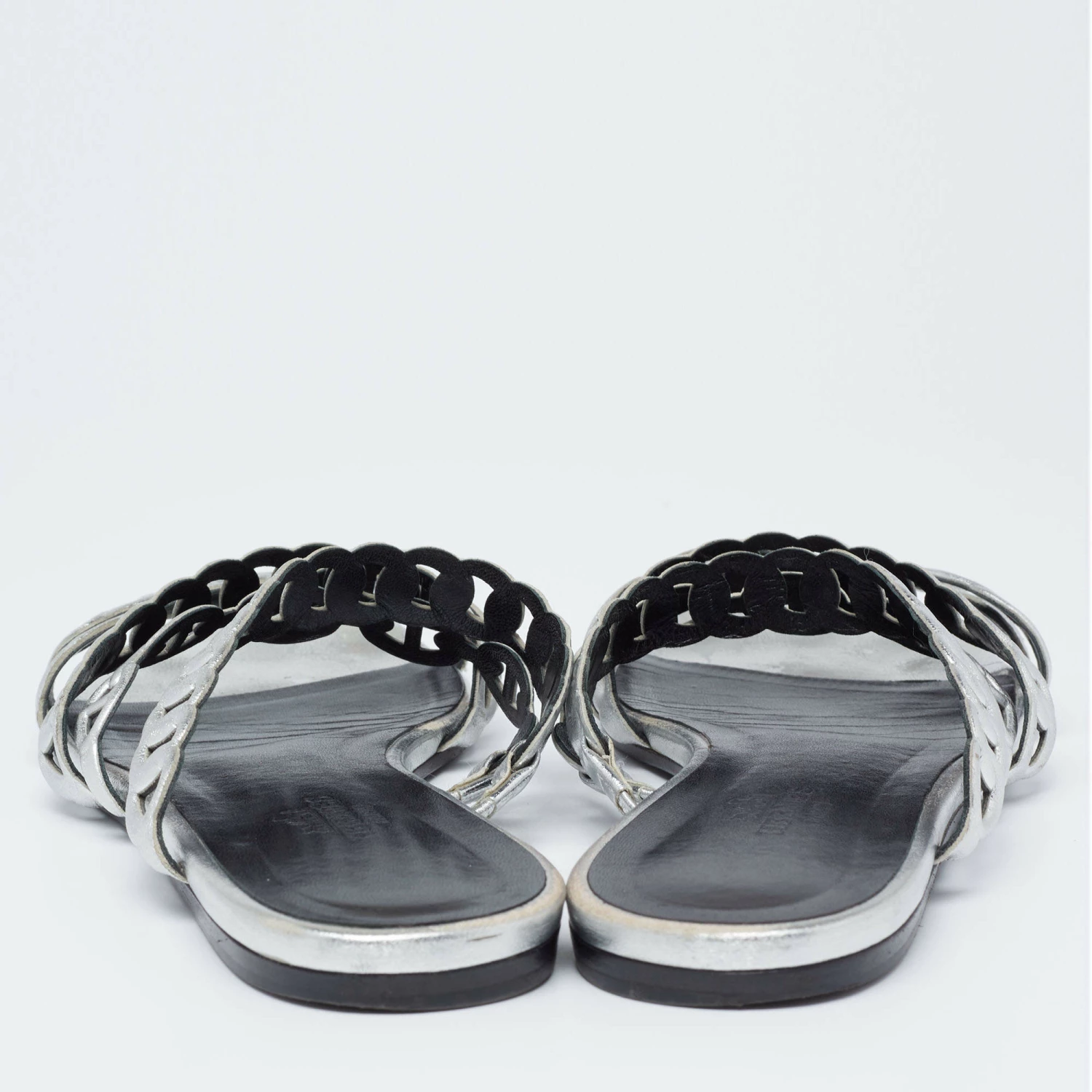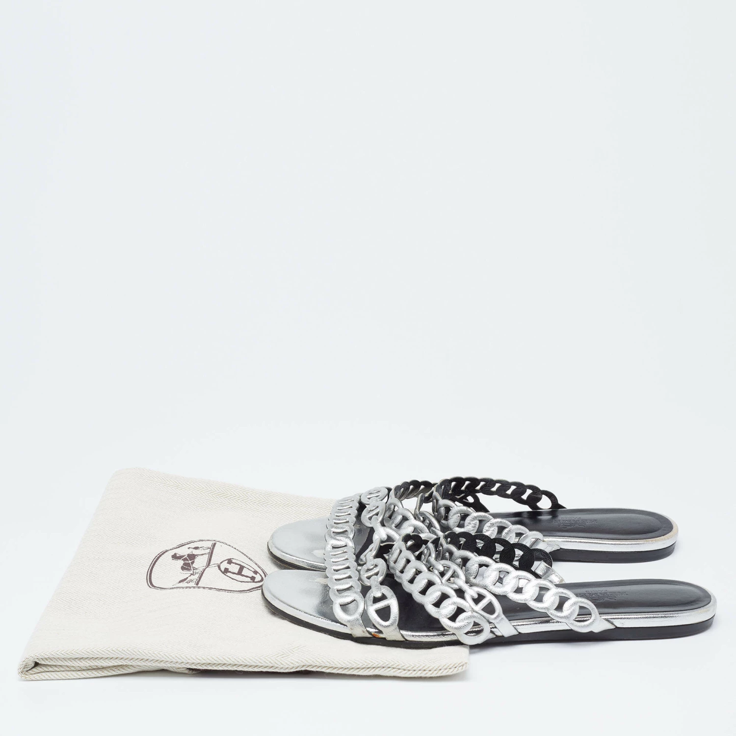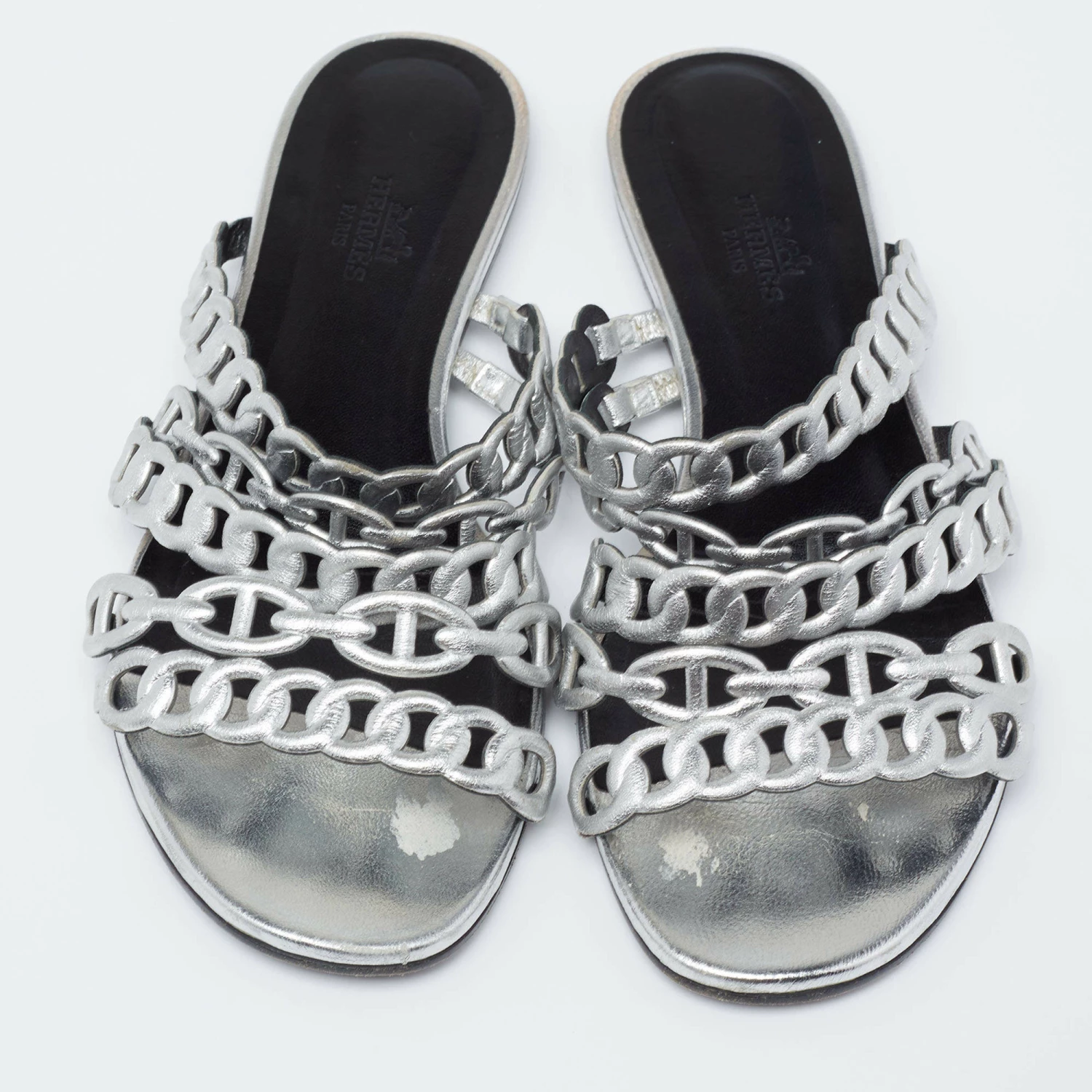 How stylish and chic do these D’ancre Chaine sandals from Hermès look! These flat sandals have an open-toe silhouette featuring multiple anchor straps across the vamps that resemble interlocking chains. Get them today and experience comfort like never before.