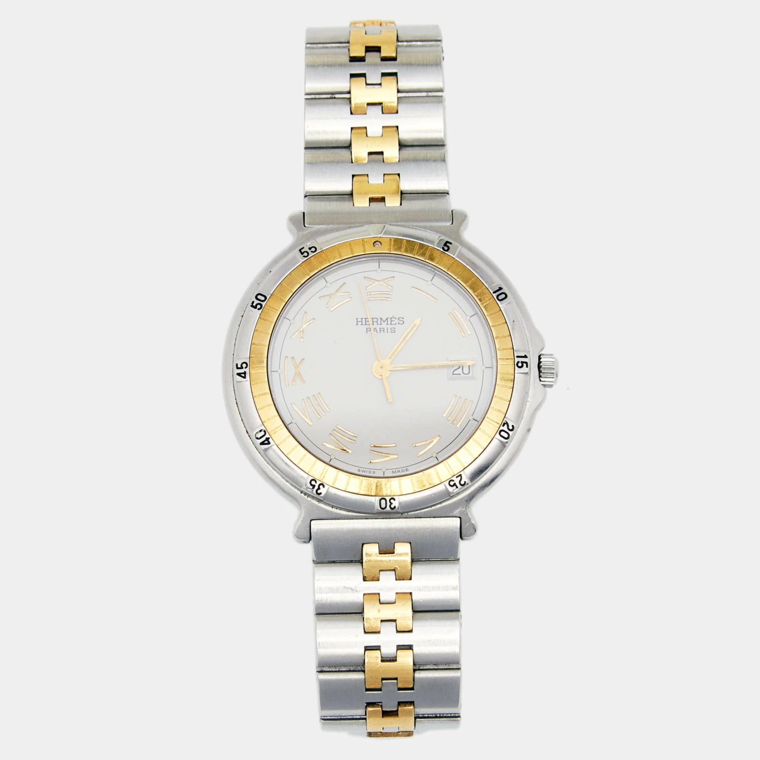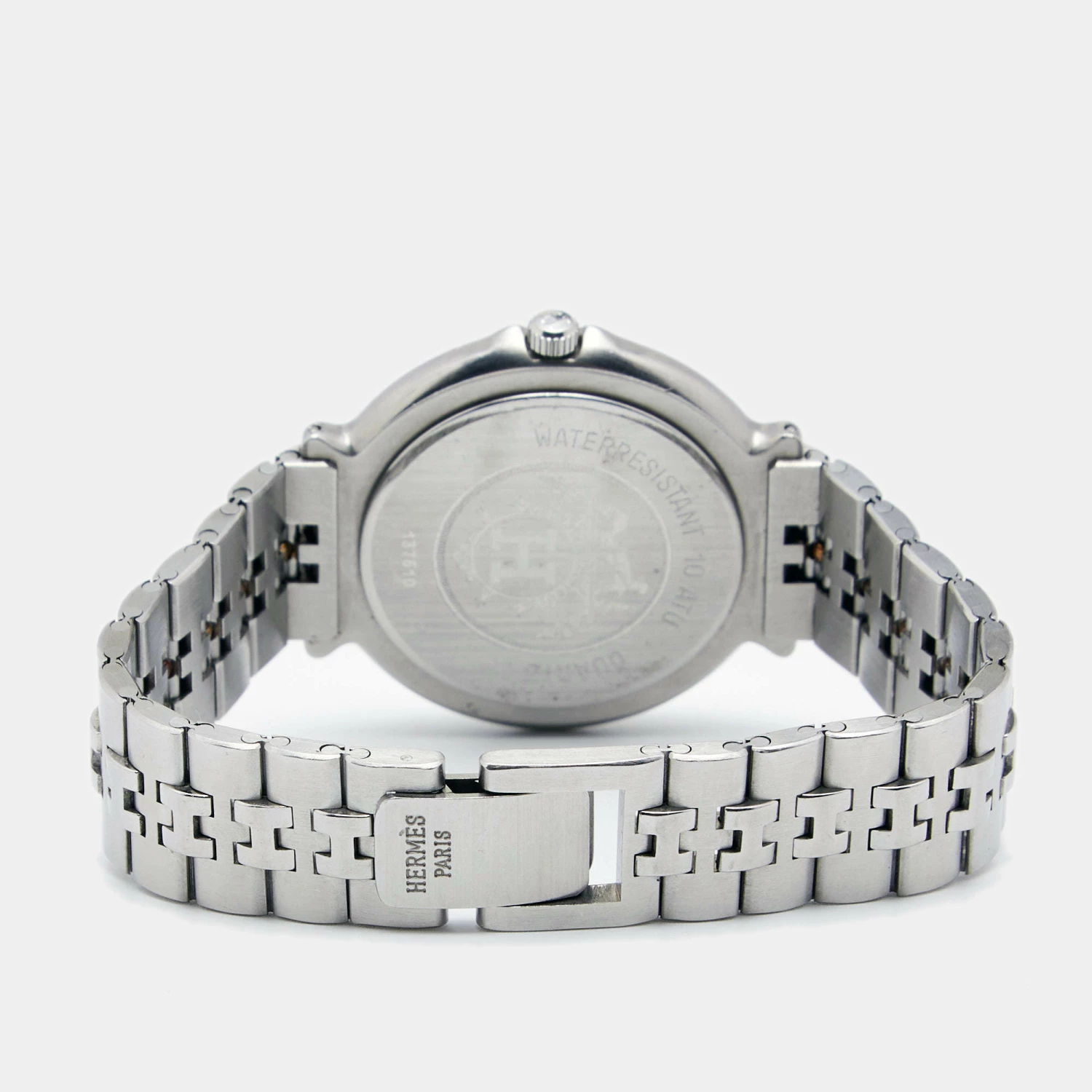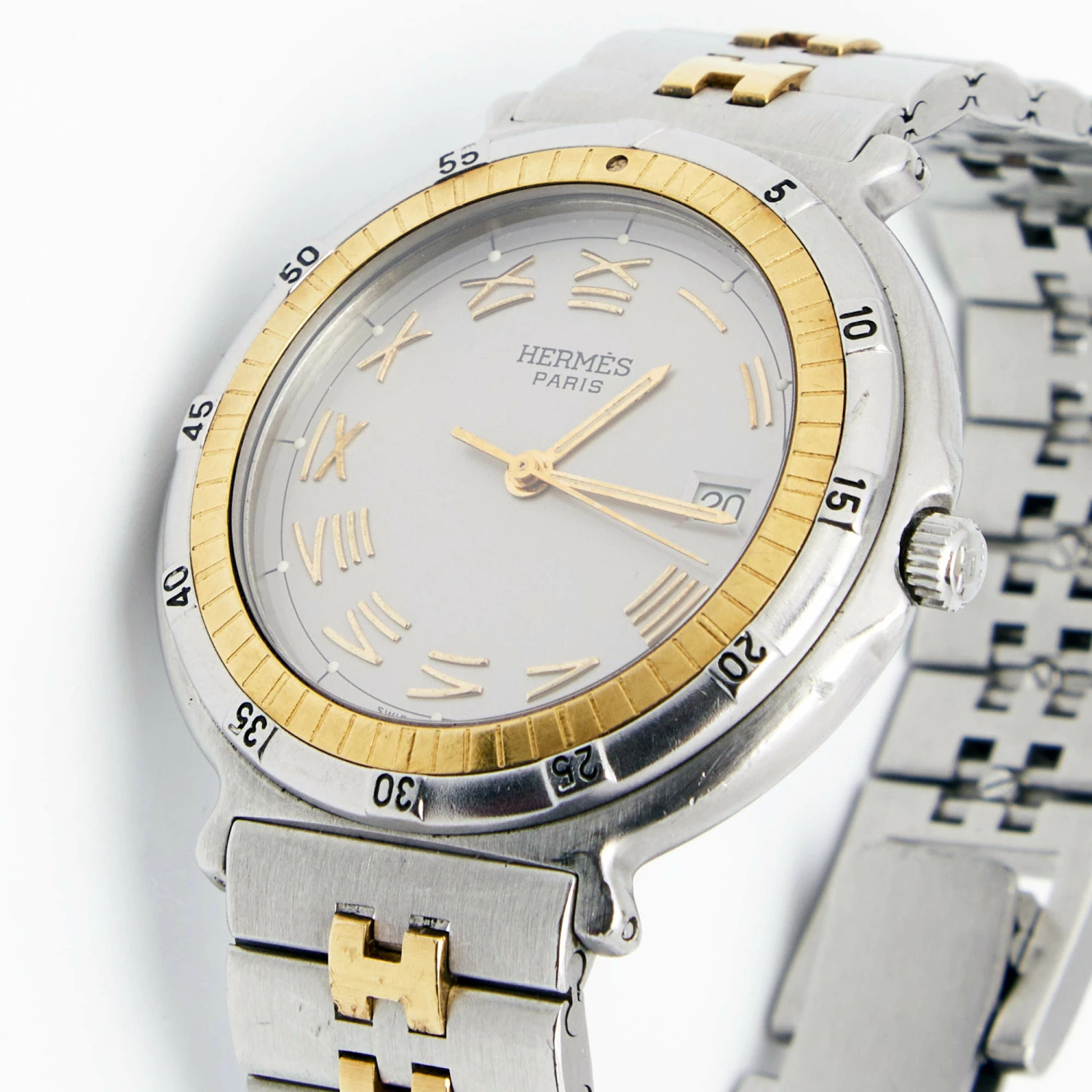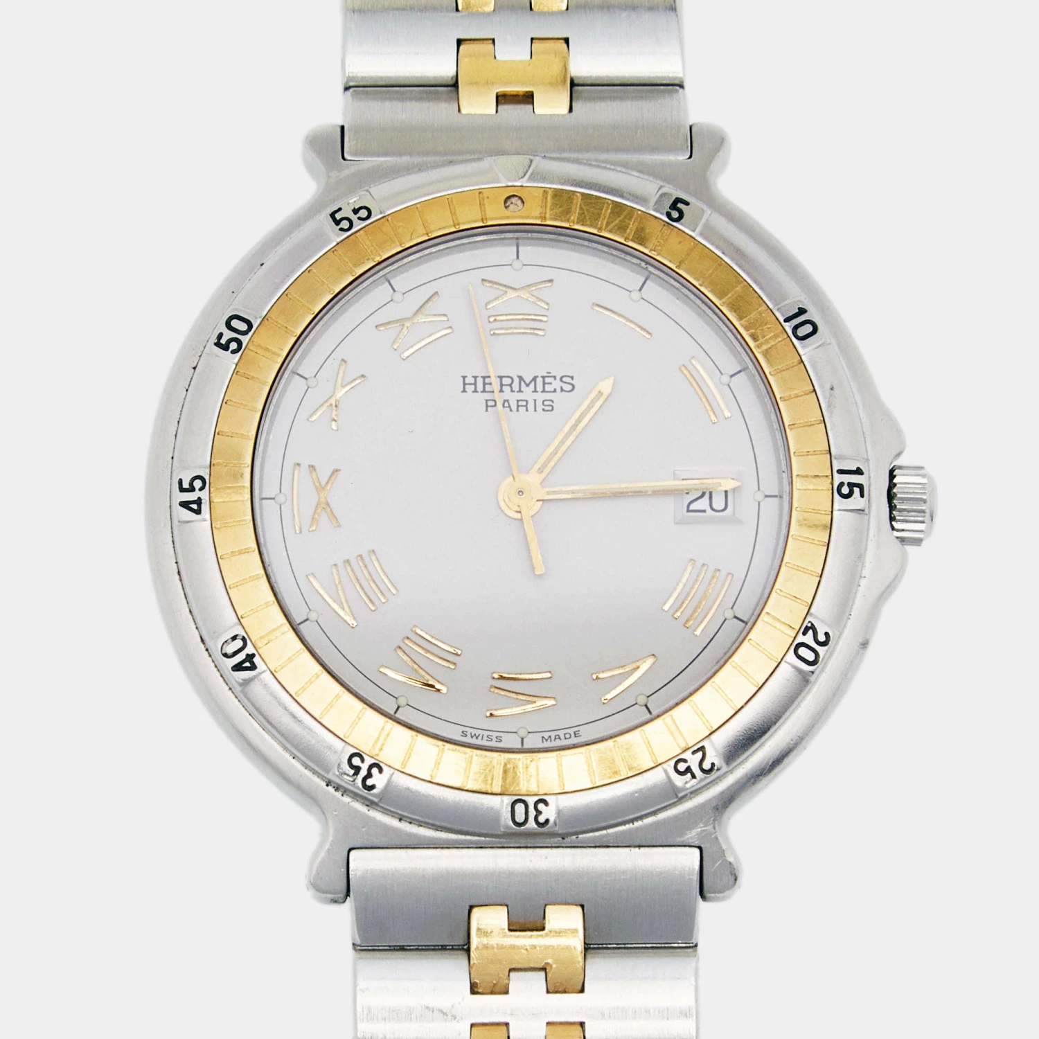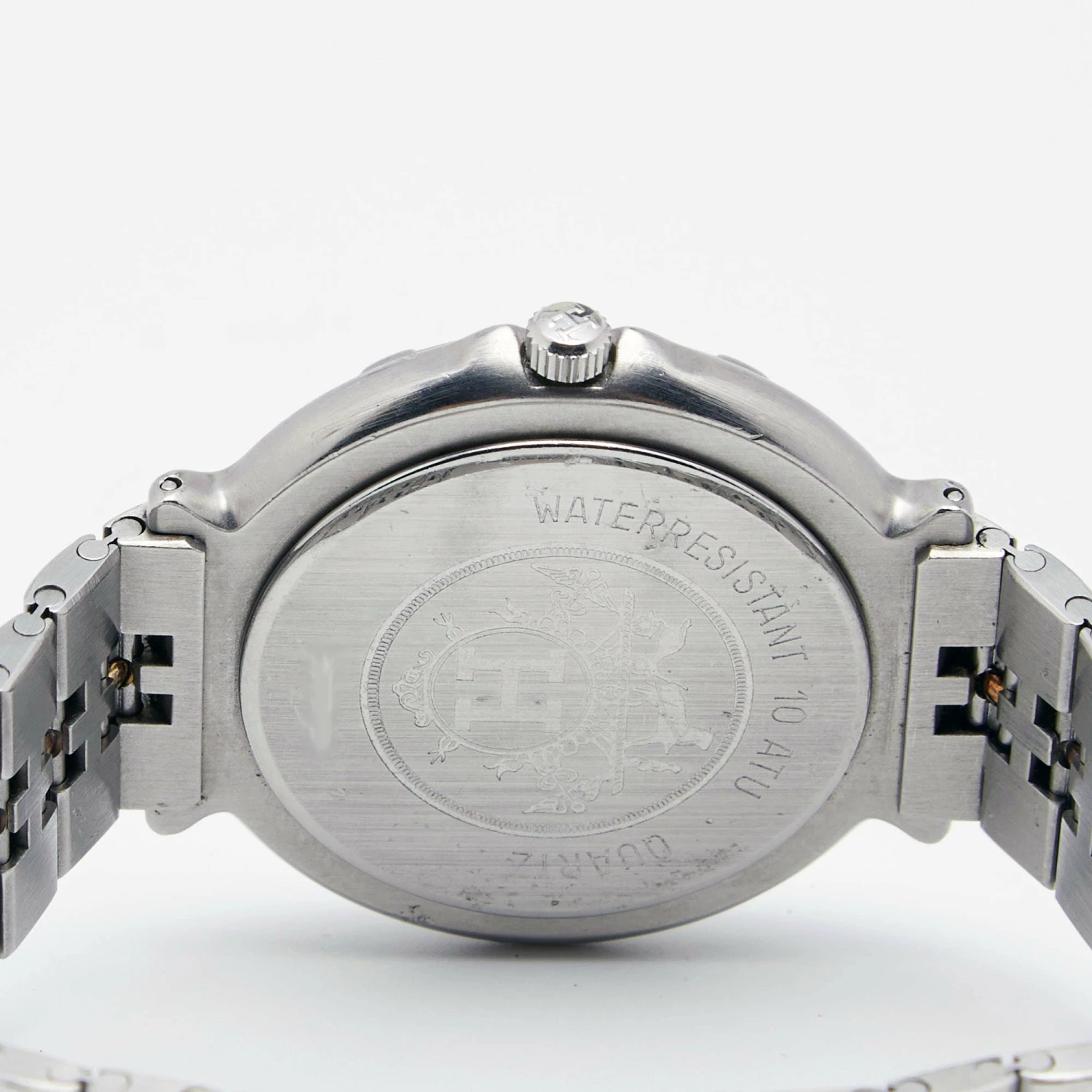 Hermes’ Captain Nemo watch is a gorgeous creation! Designed with impeccable details, Captain Nemo comes with a stainless steel case, an outer round bezel with minute markers. The stainless steel bracelet features gold-plated metal accents shaped like the brand’s initial for a signature touch.
