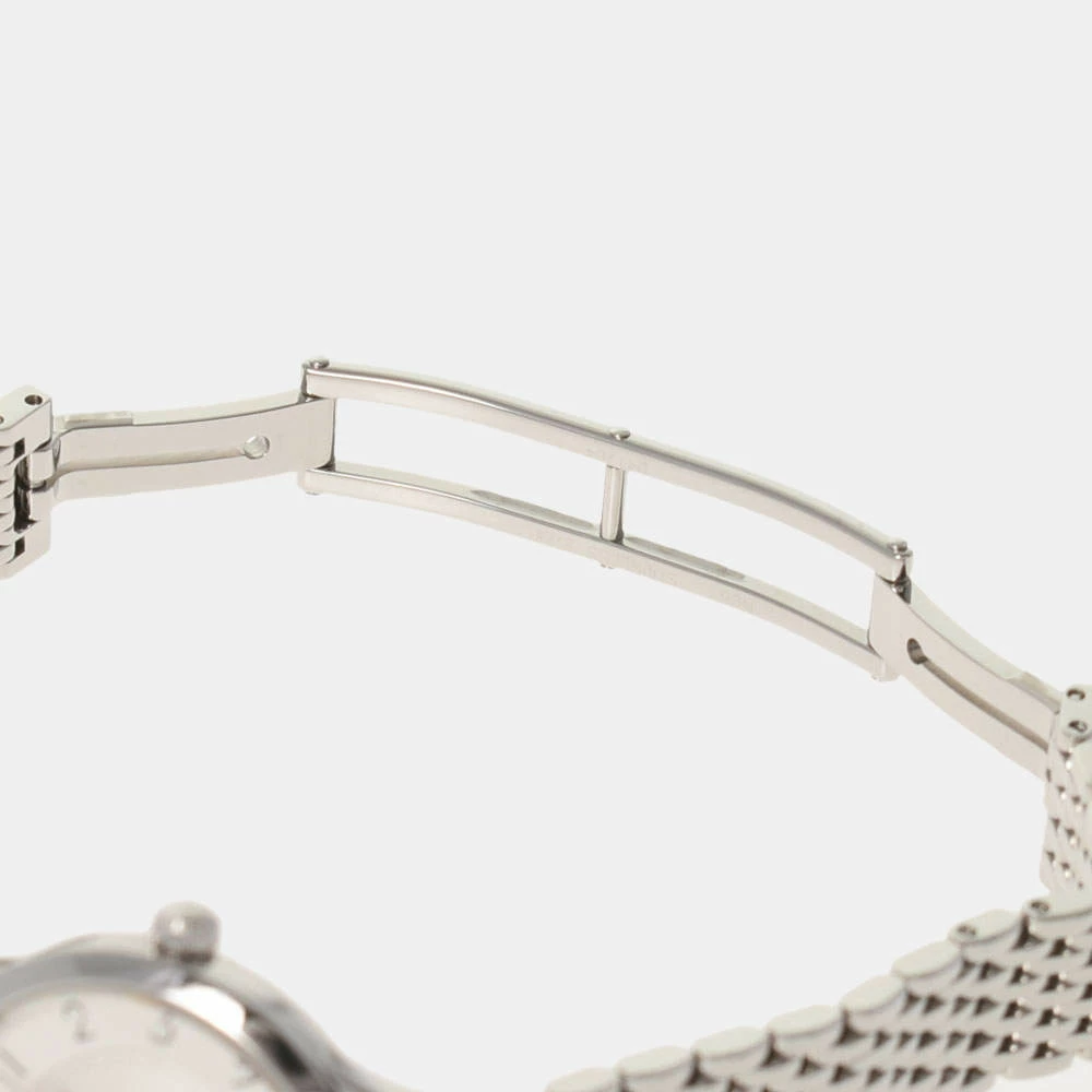 Looking for a refined accessory? Go for this stylish Hermes wristwatch that balances a modern approach and classic styling. The watch pairs a silver dial featuring black Arabic numerals with a stainless steel case and a stainless steel smooth bezel. It is secured by a fashionable stainless steel bracelet.