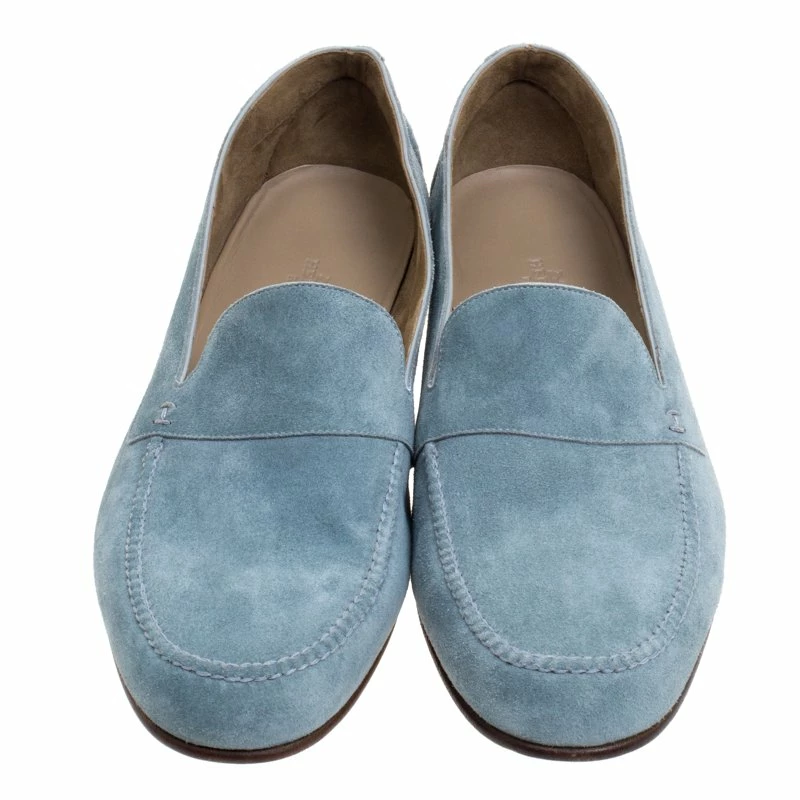 Moccasins like these ones from Hermes are worth every penny because they epitomize both comfort and style. These slate blue moccasins have been crafted from quality suede, lined with leather on the insoles and also detailed with a little H detail on the front. They also feature fine stitch detailing and rubber studs on the outsoles. Pair them up with slim-fit chinos for a smart casual look.