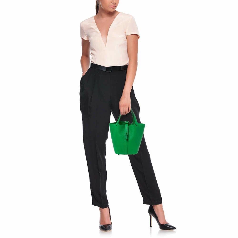 Wonderfully crafted from Clemence leather, this Hermes Picotin Lock 18 is a creation for people who love a blend of luxury and style. It comes in a grand color and it sits in a relaxed shape with two handles and a leather interior. Armed with protective metal feet as a finishing touch, this bag will be a sweet style companion.
