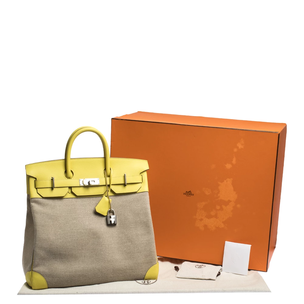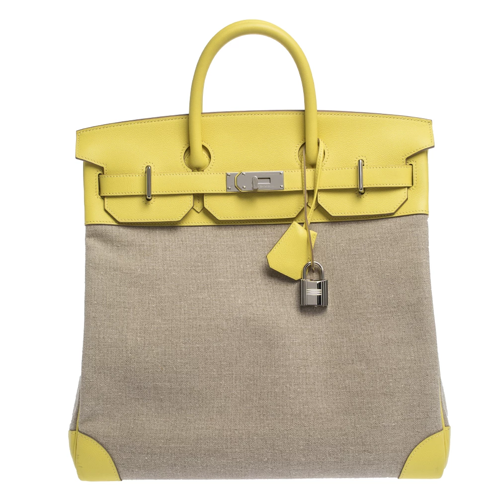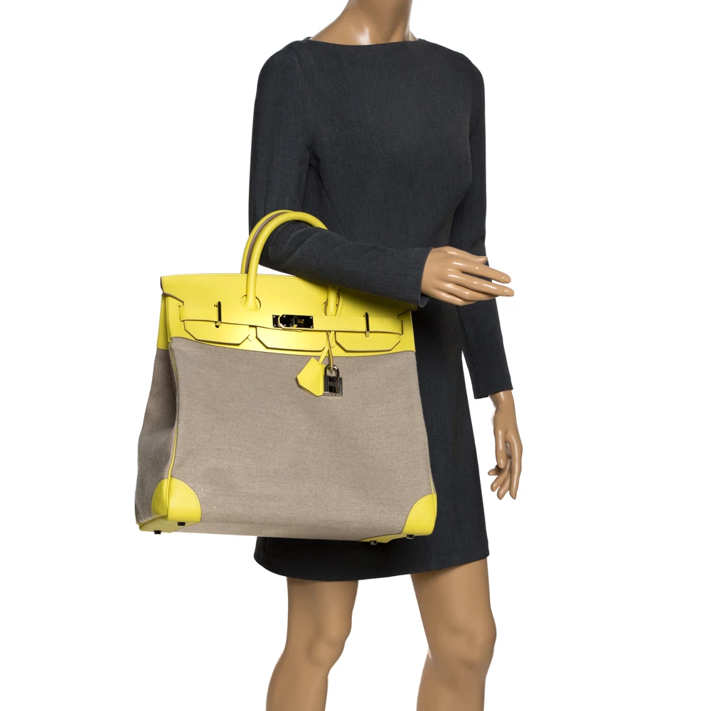 Hermes Birkin was inspired by Jane Birkin and is one of the most desired handbags in the world. A timeless classic that never goes out of style. Handcrafted from the highest quality of leather by skilled artisans, it takes long hours of rigorous effort to stitch a Birkin together. Crafted in France from quality canvas & leather, the bag features dual top rolled handles and a padlock with its keys within a clochette. The bag comes with silver-tone and has a spacious canvas-lined interior that will hold all your belongings. High quality and flawless craftsmanship are synonymous with Hermes. Durable and resistant to wear, the Birkin is a heritage that can last many years.