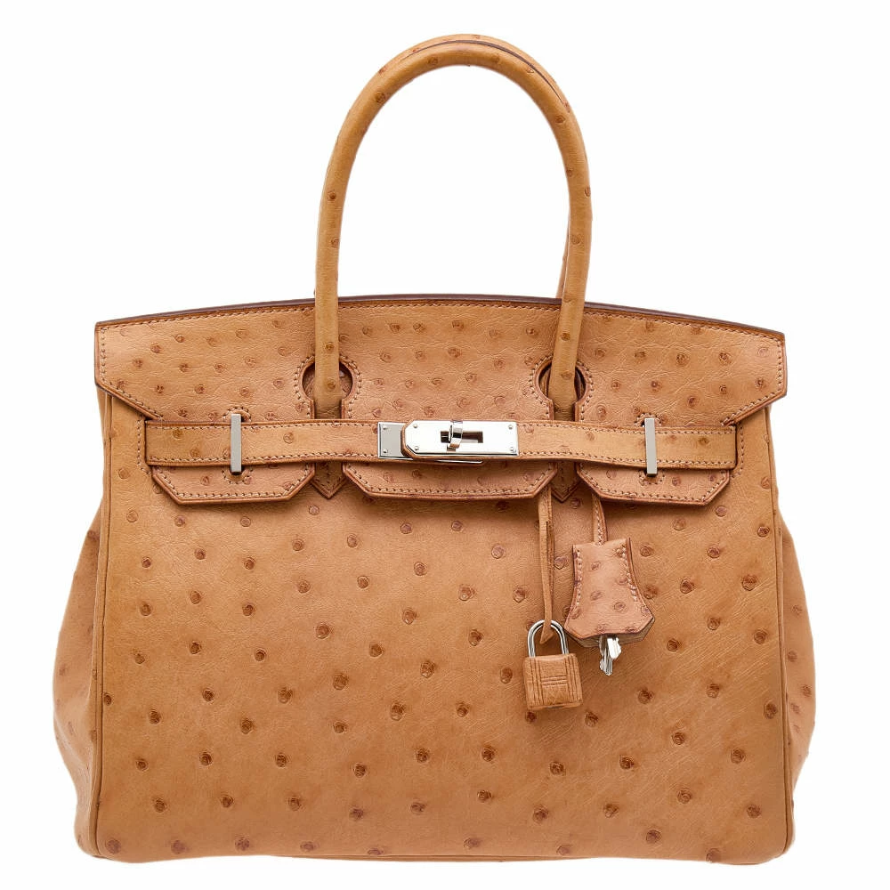 A bag that has become a hallmark of luxury and class, the Birkin from Hermès is one of the most coveted bags in the world. Custom-made on the suggestions of Jane Birkin, hence the namesake, this bag is aimed to fit the wants of the fast-paced life of modern women. Timeless design coupled with rich craftsmanship, the body of this Birkin bag is crafted from exotic ostrich skin. Its foldover top is secured by a palladium-plated turn-lock closure, accompanied by a leather interior. Complete with dual-rolled handles and studs at the bottom, the Birkin is a heritage that can last many years. High quality and flawless craftsmanship are synonymous with Hermès.